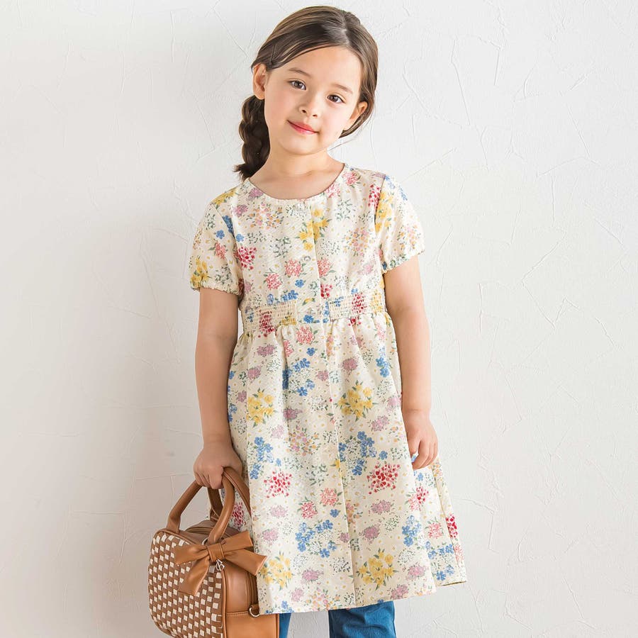 【お揃い】リップルマルシェフラワーパフスリーブワンピース(90~150cm)