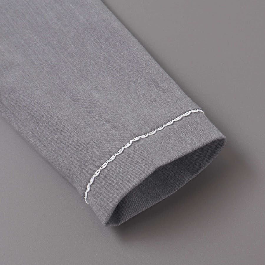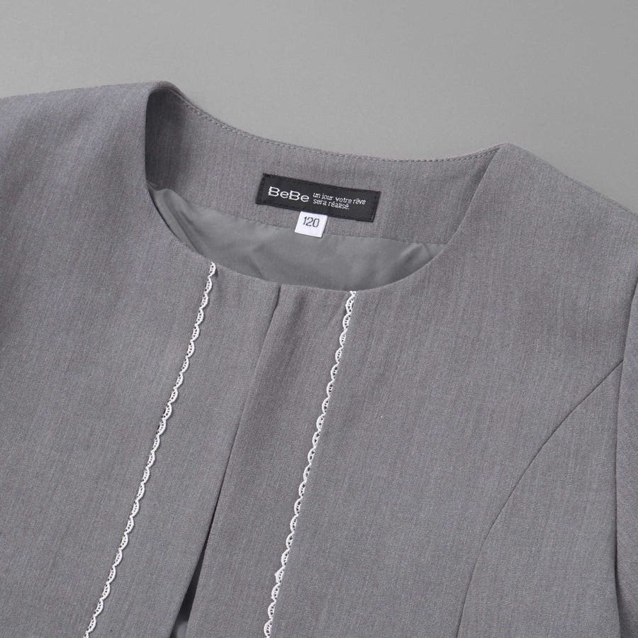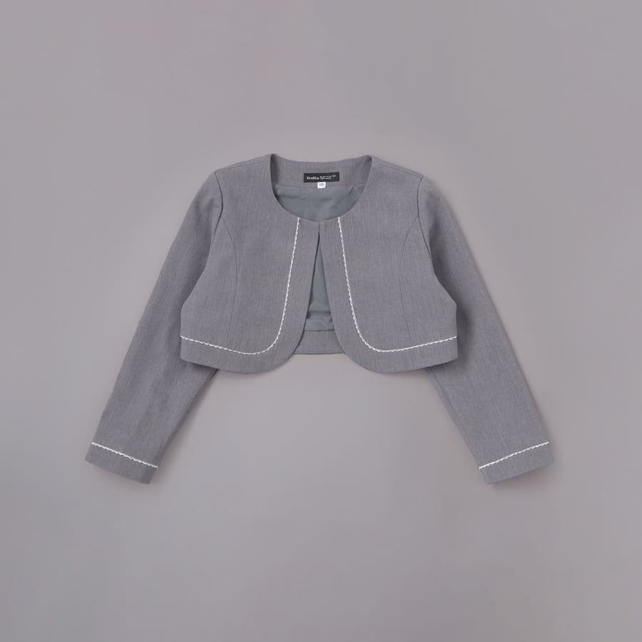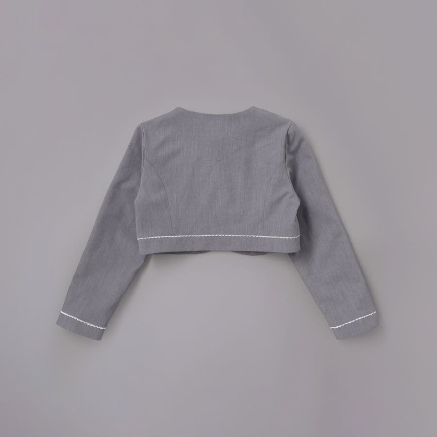 ボレロジャケットはすっきりとしたグレーのカラーに白いレースがさりげなくかわいいデザイン。
