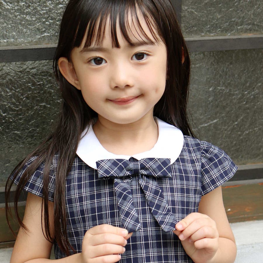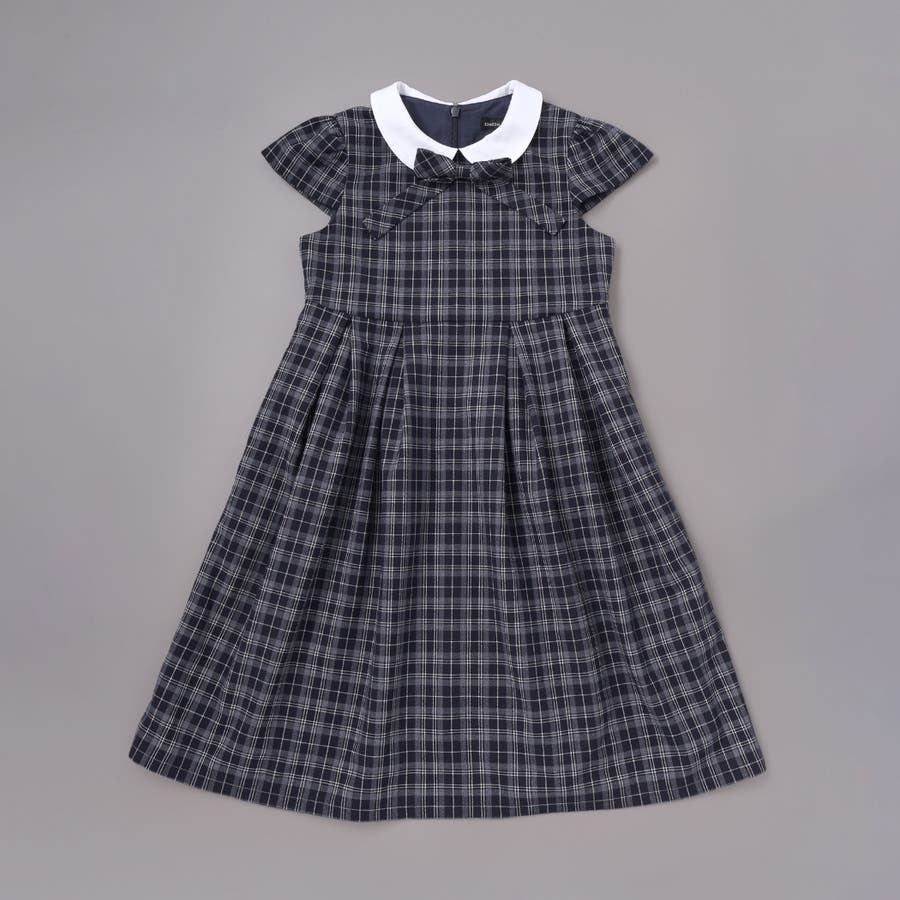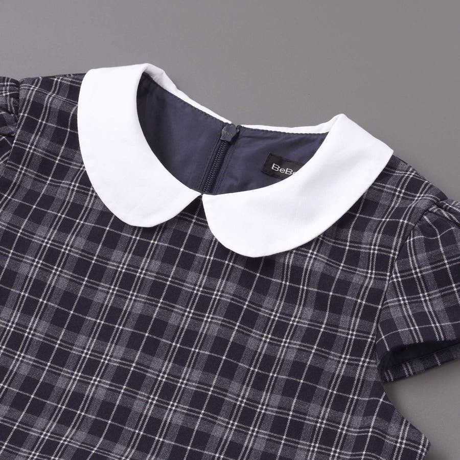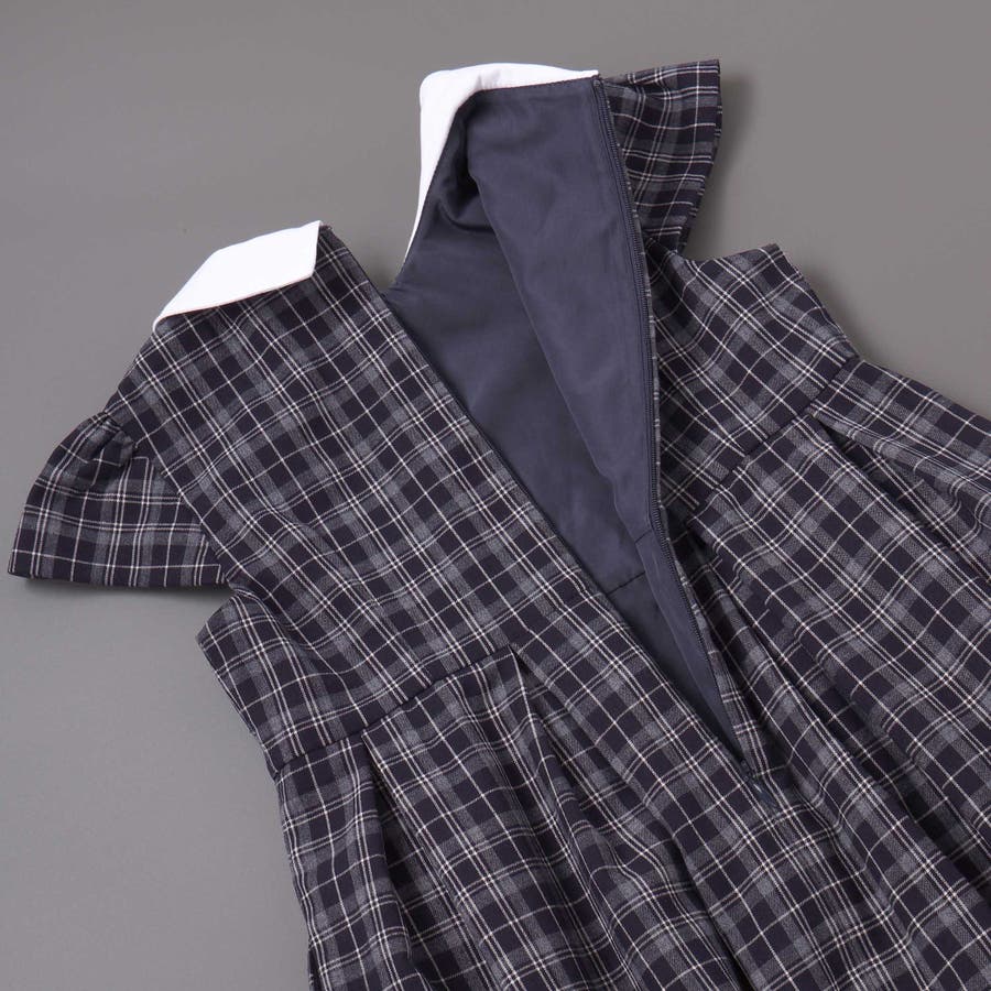 ワンピースはネイビー系チェックとコンパクトな白い丸襟で上品に仕上げました。