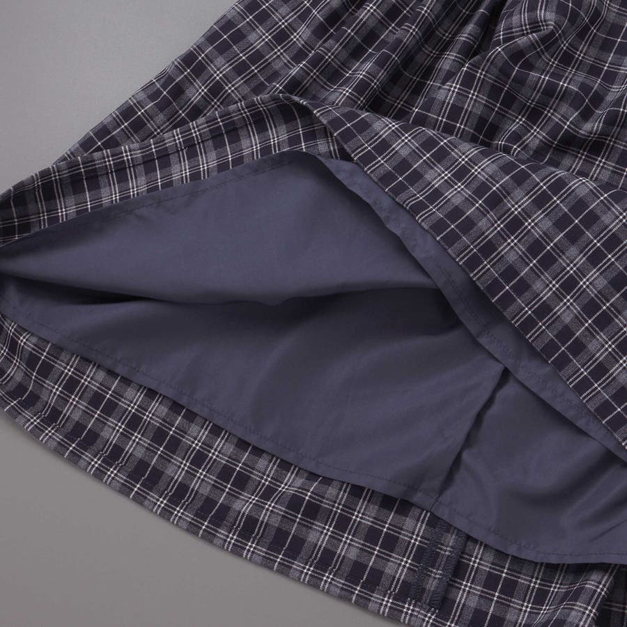 ワンピースにはポリエステルレーヨンの先染めチェック生地を使用。しなやかな質感が上品です。