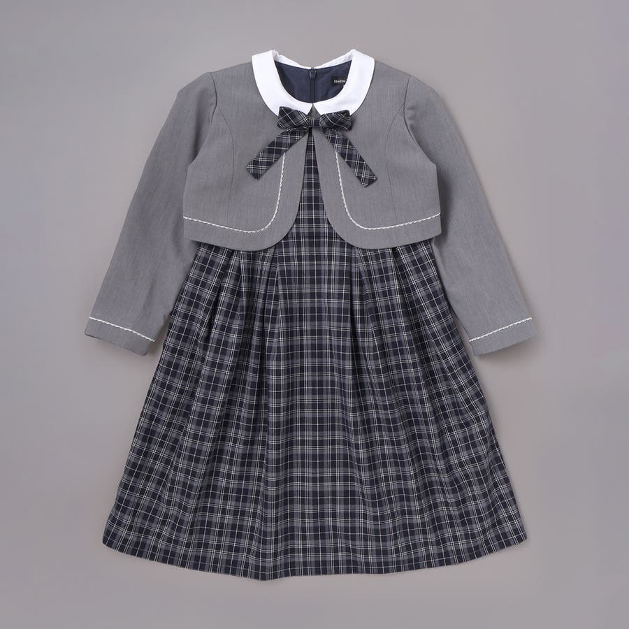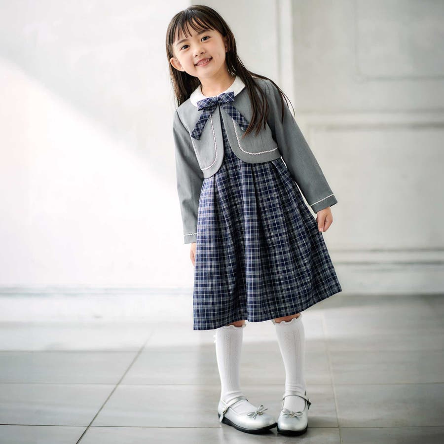 ボレロ+リボンタイ付きチェックワンピースセット(110~130cm)