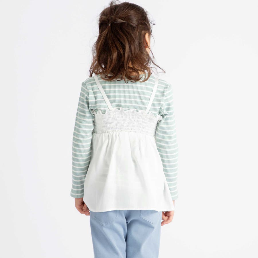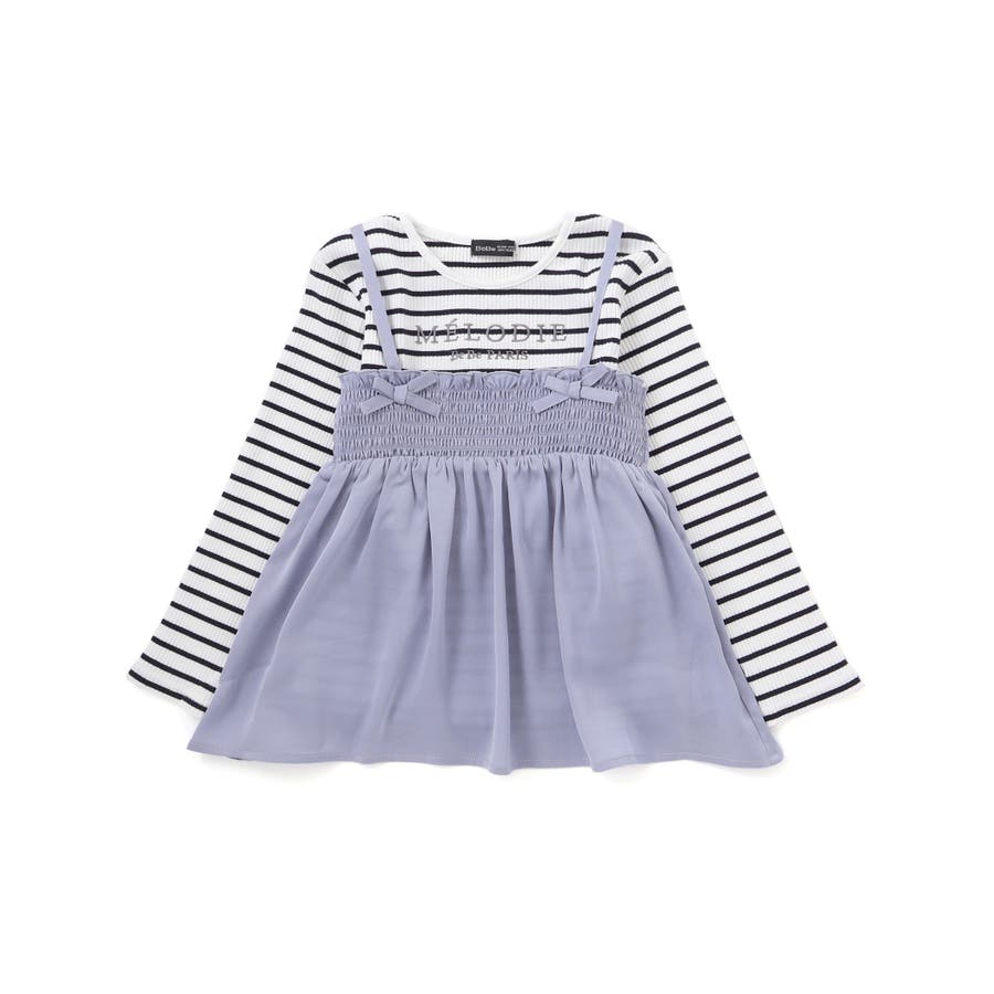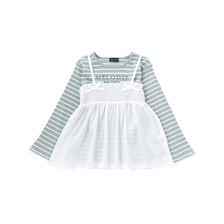 ラメジョーゼットシャーリングキャミ+リブボーダー長袖Tシャツセット(90~160…