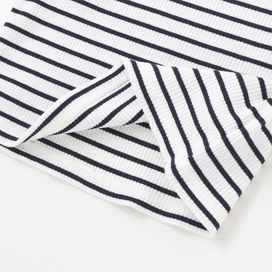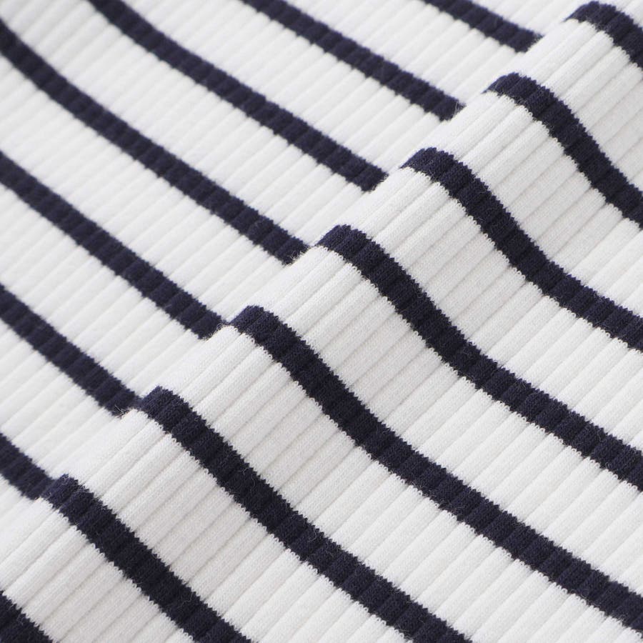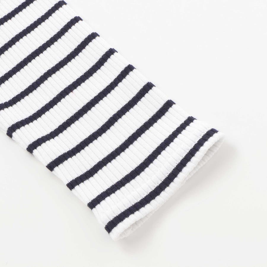長袖Tシャツはシンプルかつ着回し力のある細ボーダーのリブ素材。