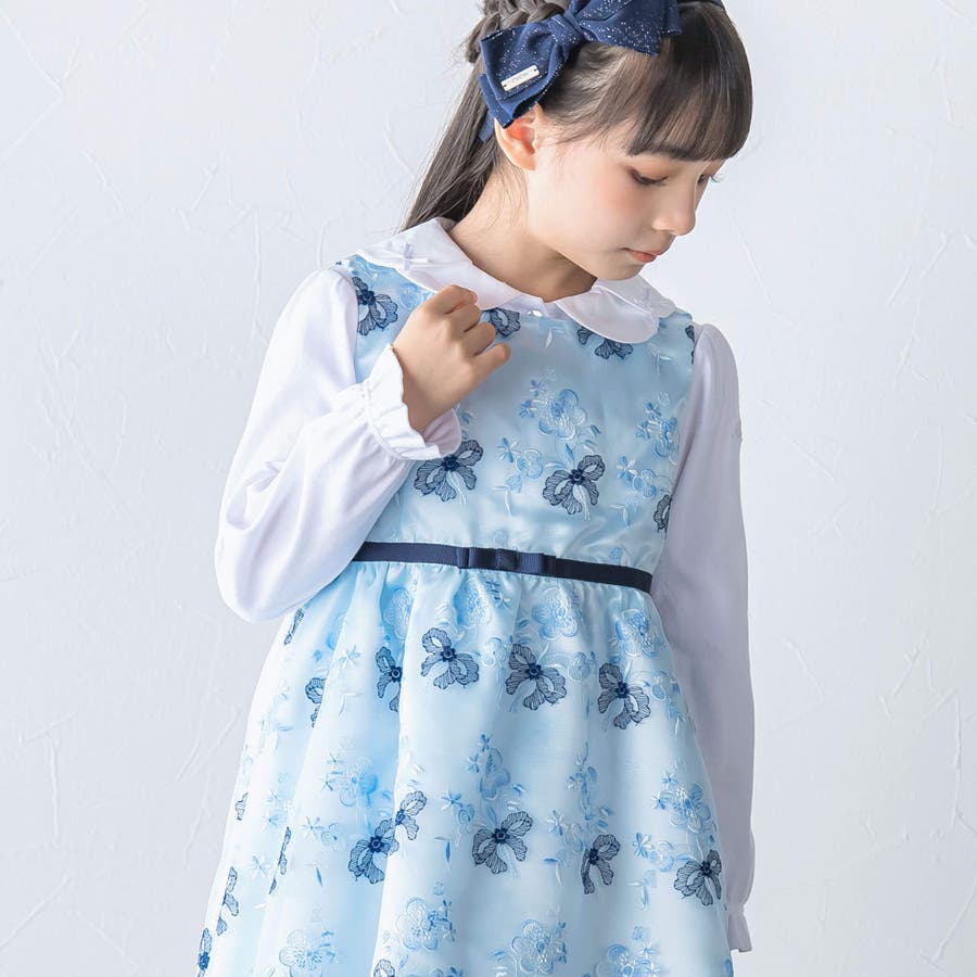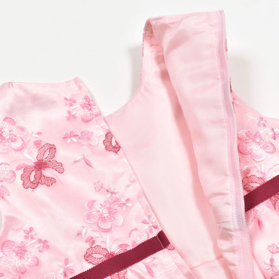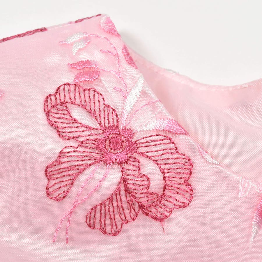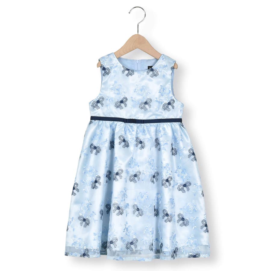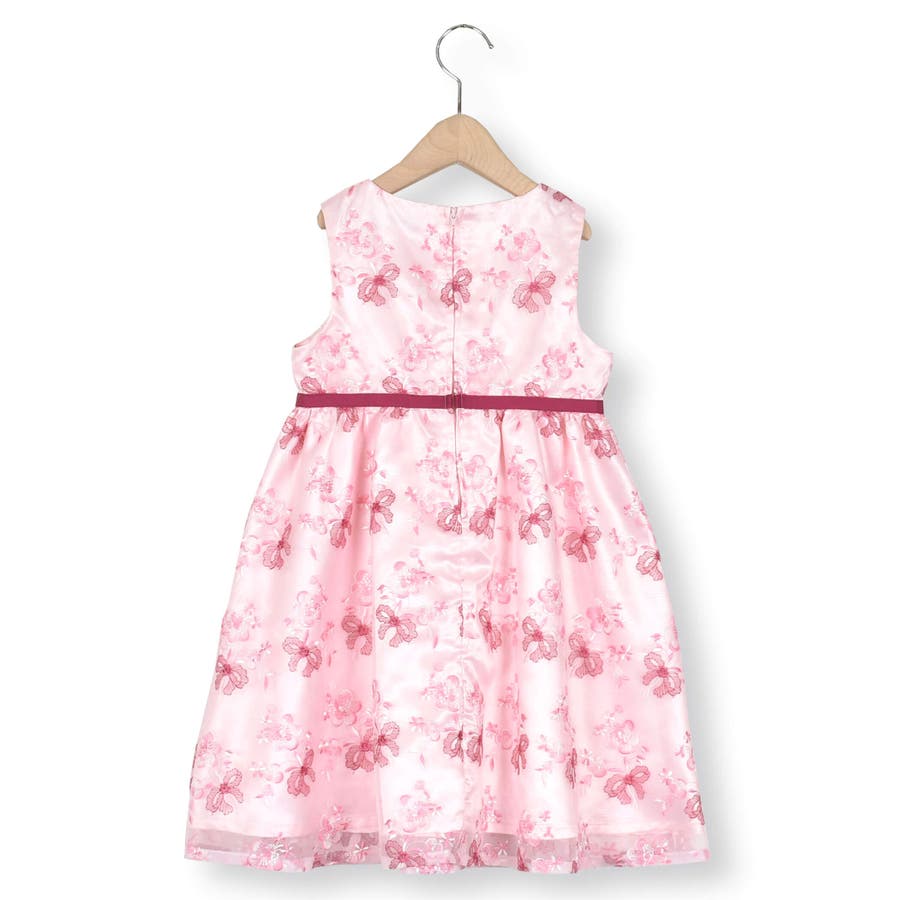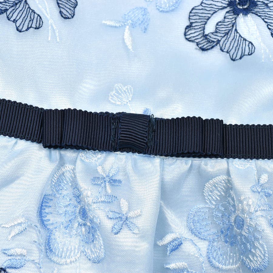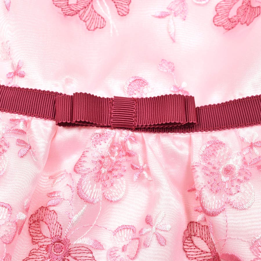 【日本製】オーガンジー花柄リボン刺しゅうワンピース(110~130cm)