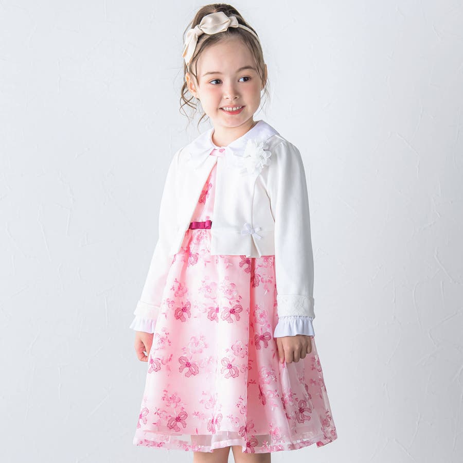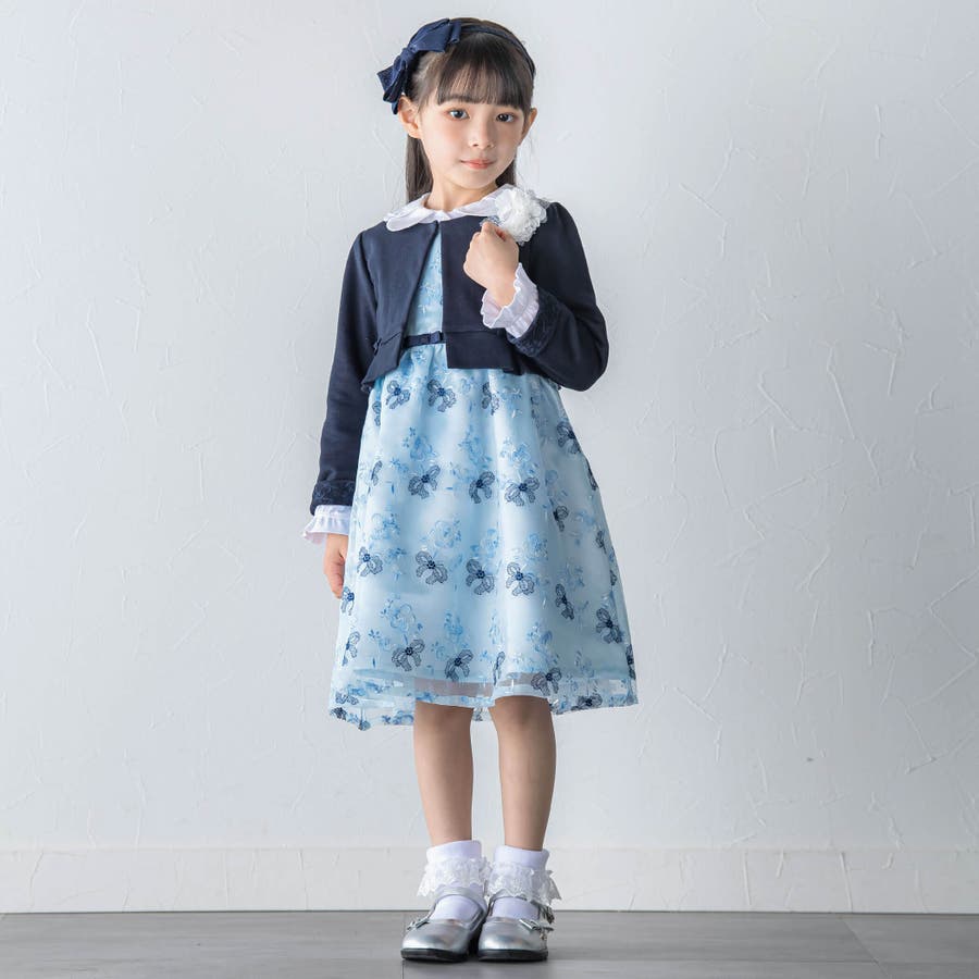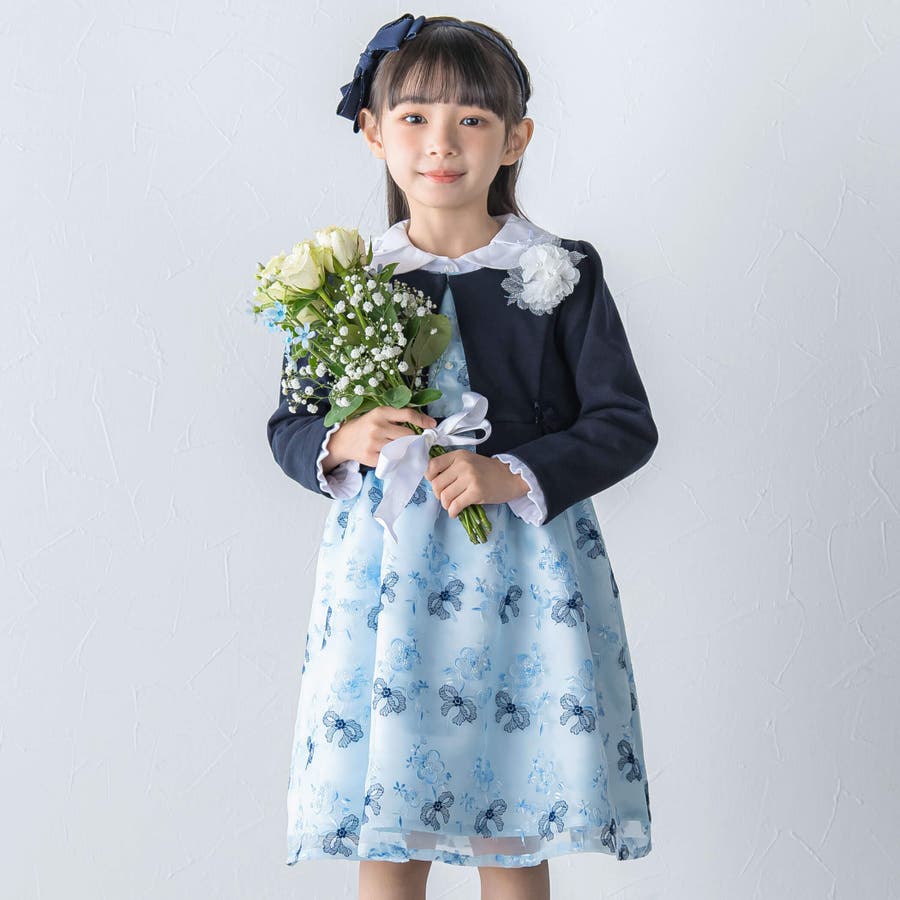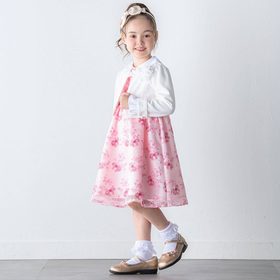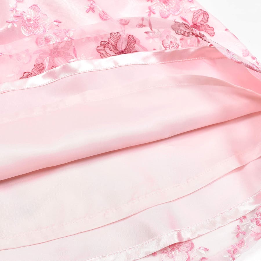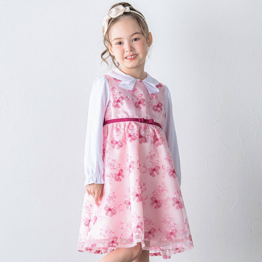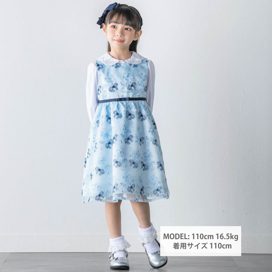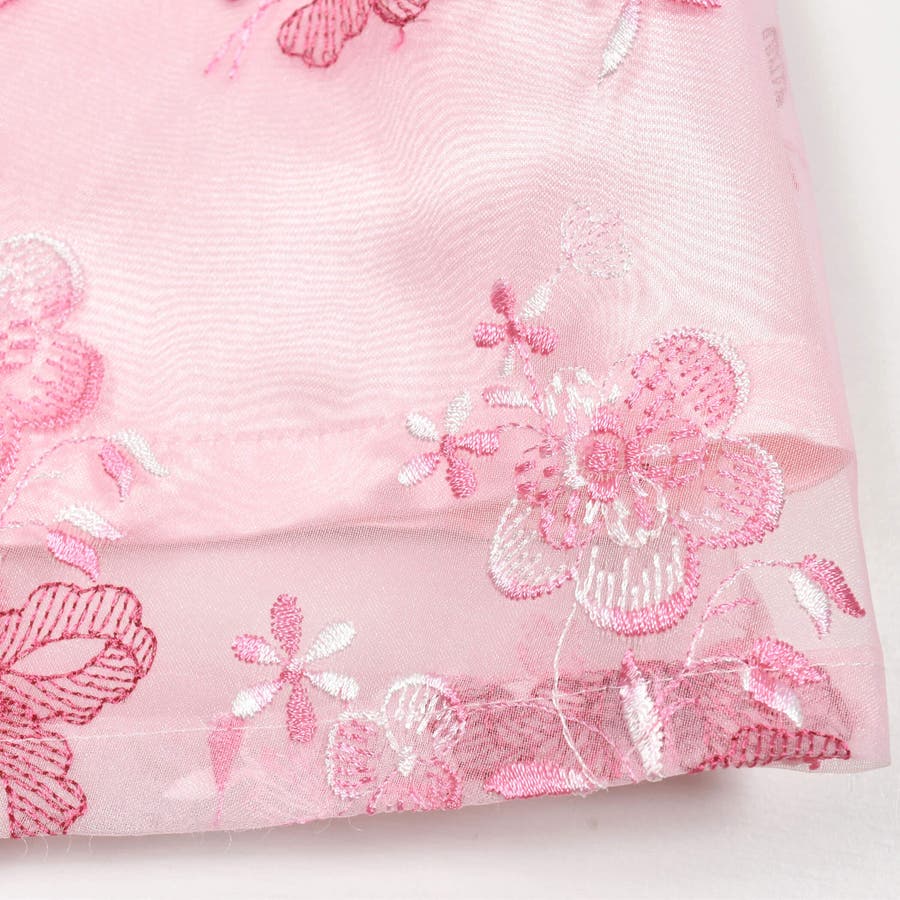 【日本製】オーガンジー花柄リボン刺しゅうワンピース(110~130cm)