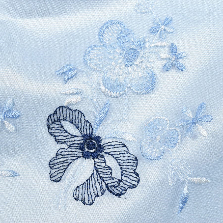 お花の部分にはグラデーションになった刺しゅう糸を使って、奥行きのある生地に仕上がっています。