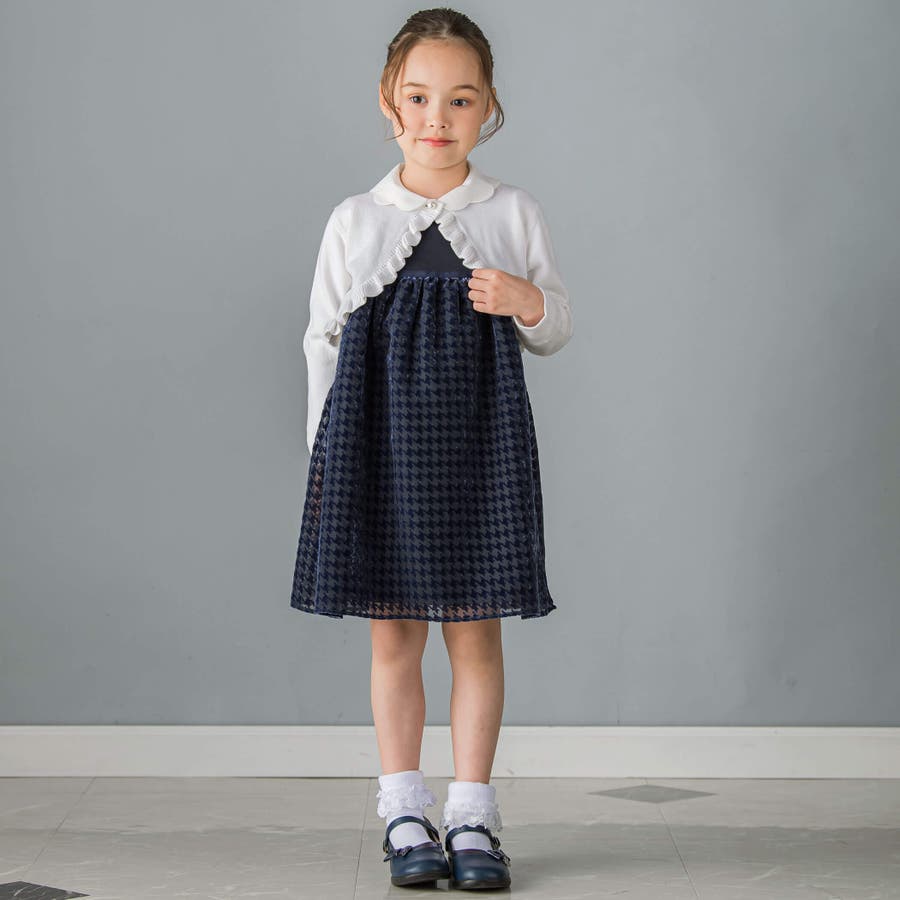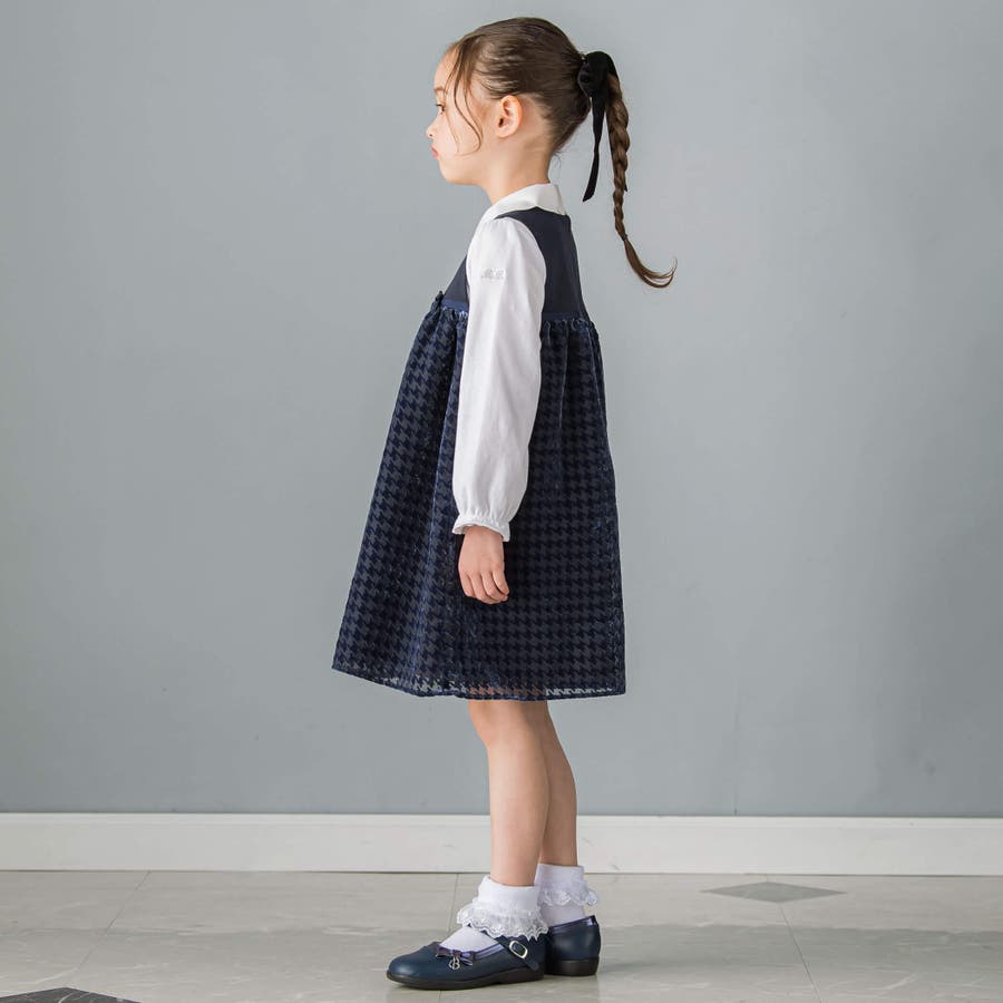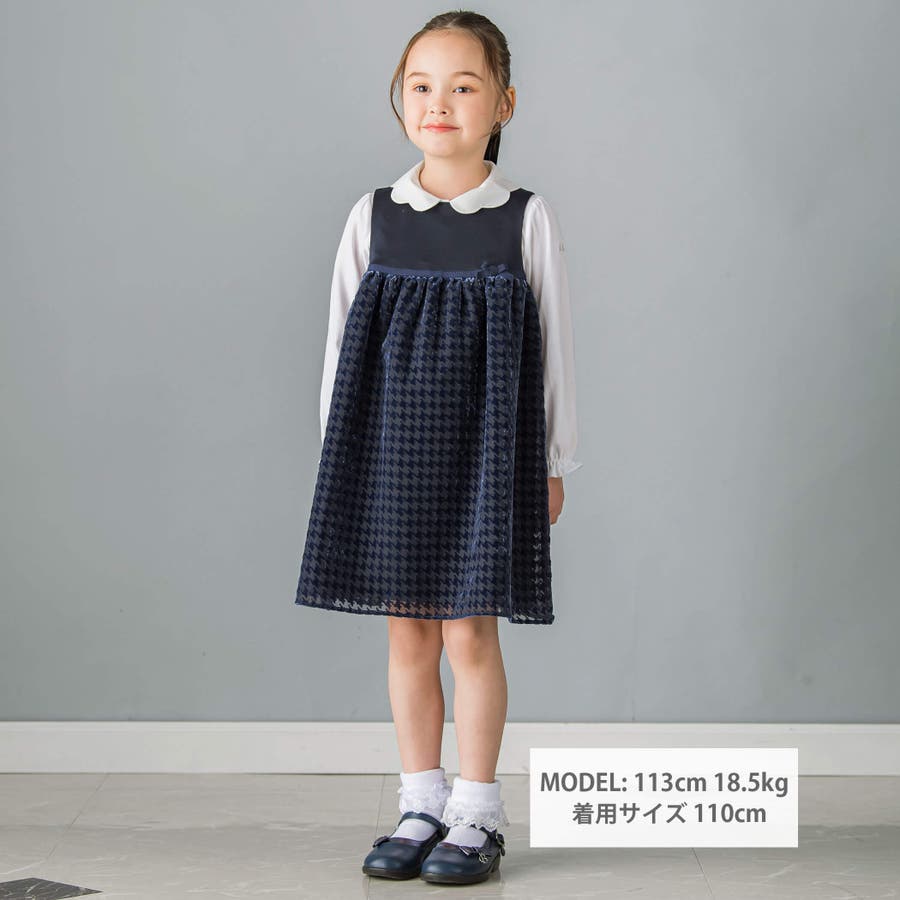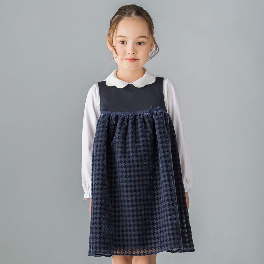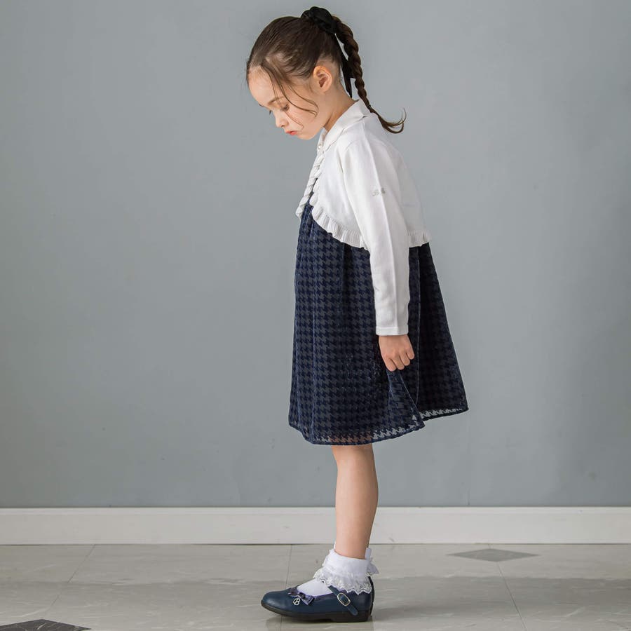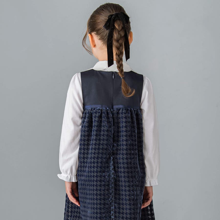 【日本製】千鳥格子オパールベルベットドレス(100~140cm)