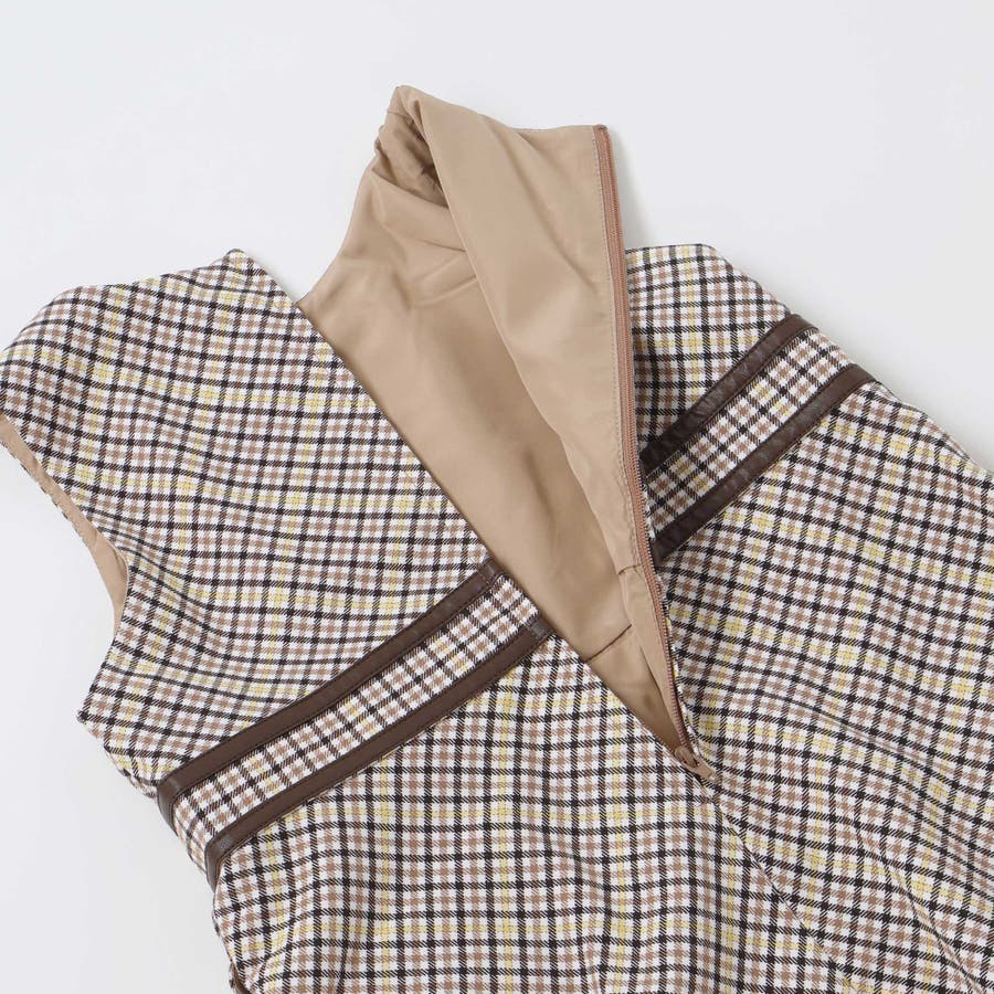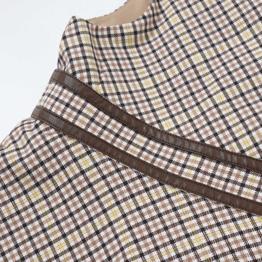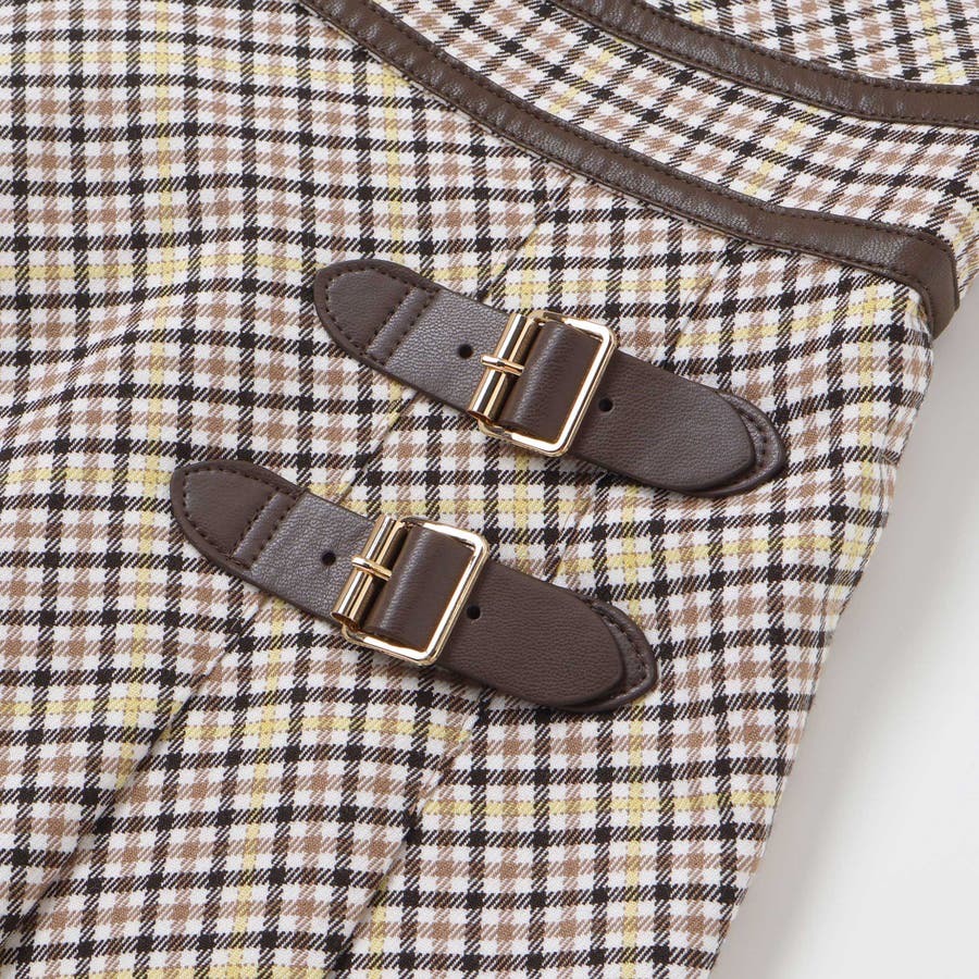 ウエストベルト部分のフェイクレザーのパイピングが、シルエットを引き締めてくれます。