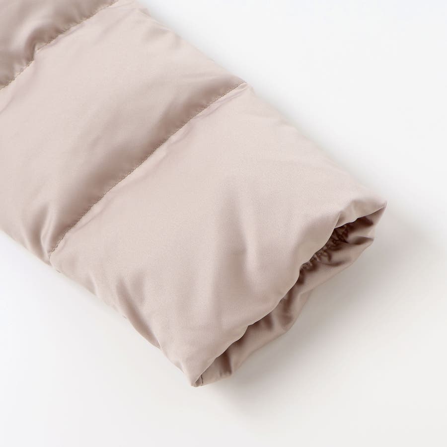 カジュアルになりがちな中綿コートも落ち着いたベージュのカラーとファーの切り替えでレディライクな雰囲気に。