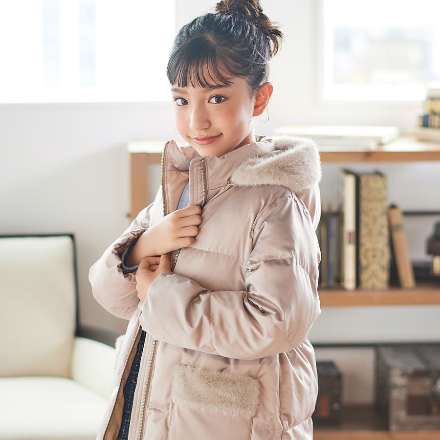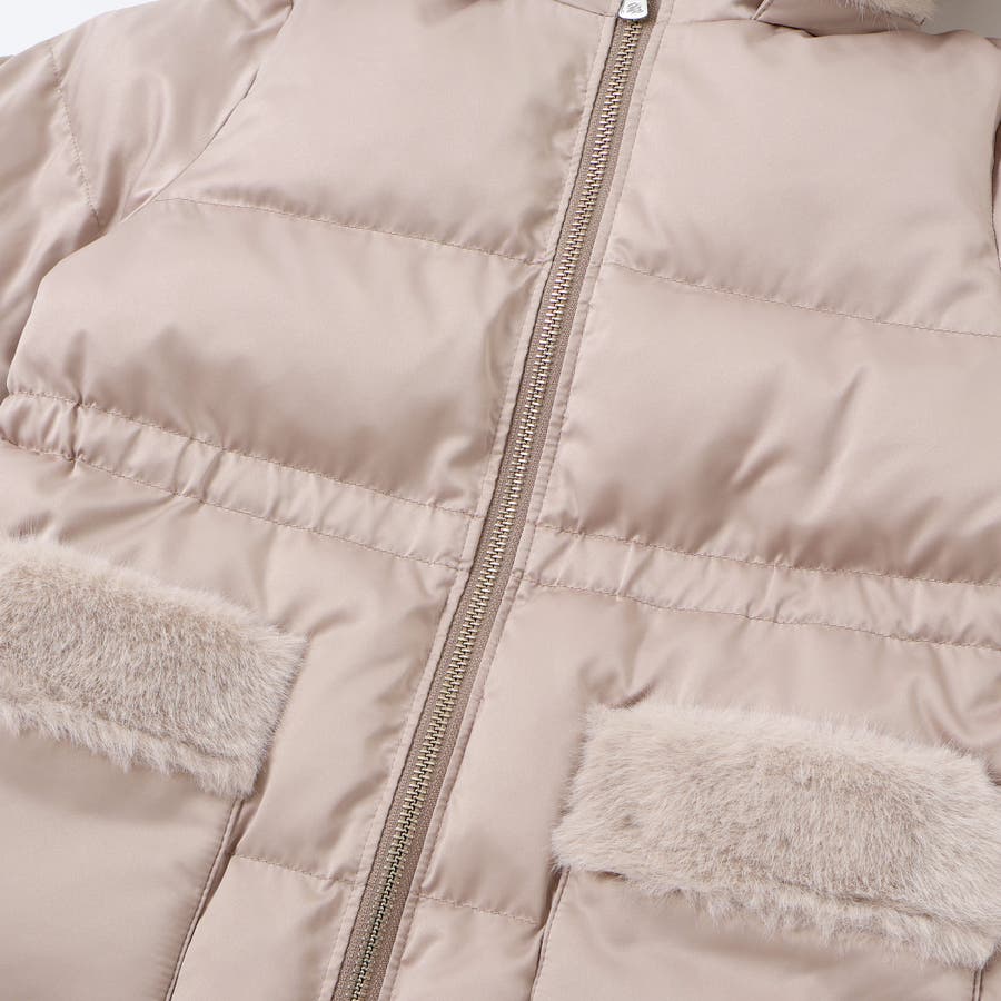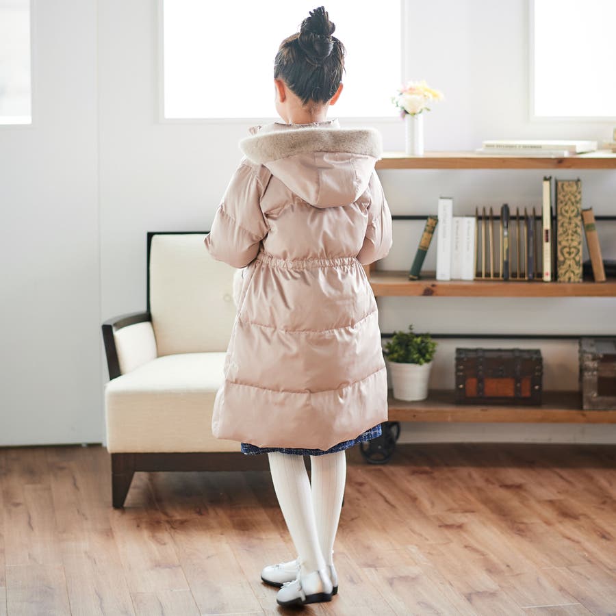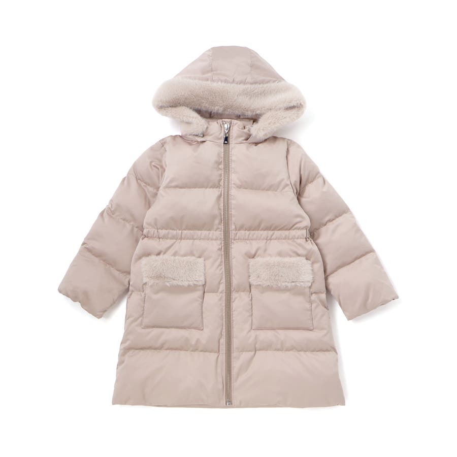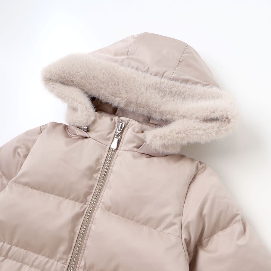 【撥水加工】タフタウエストギャザーファーフード中綿コート(100~160cm)