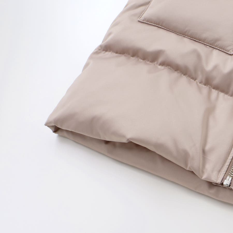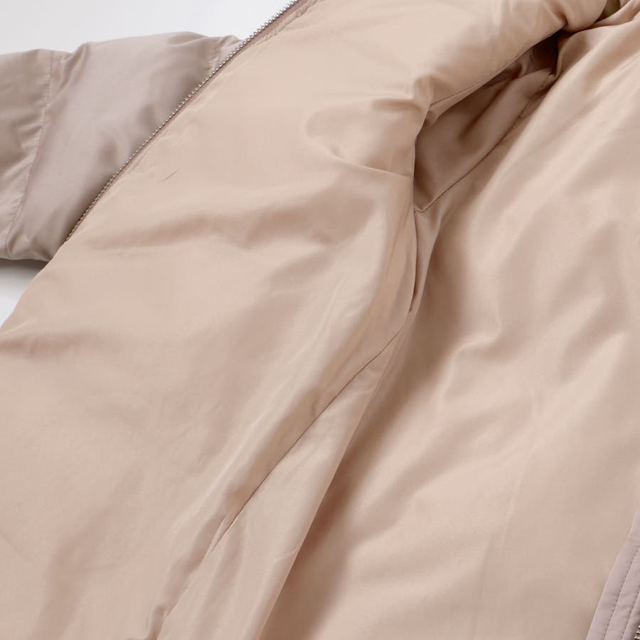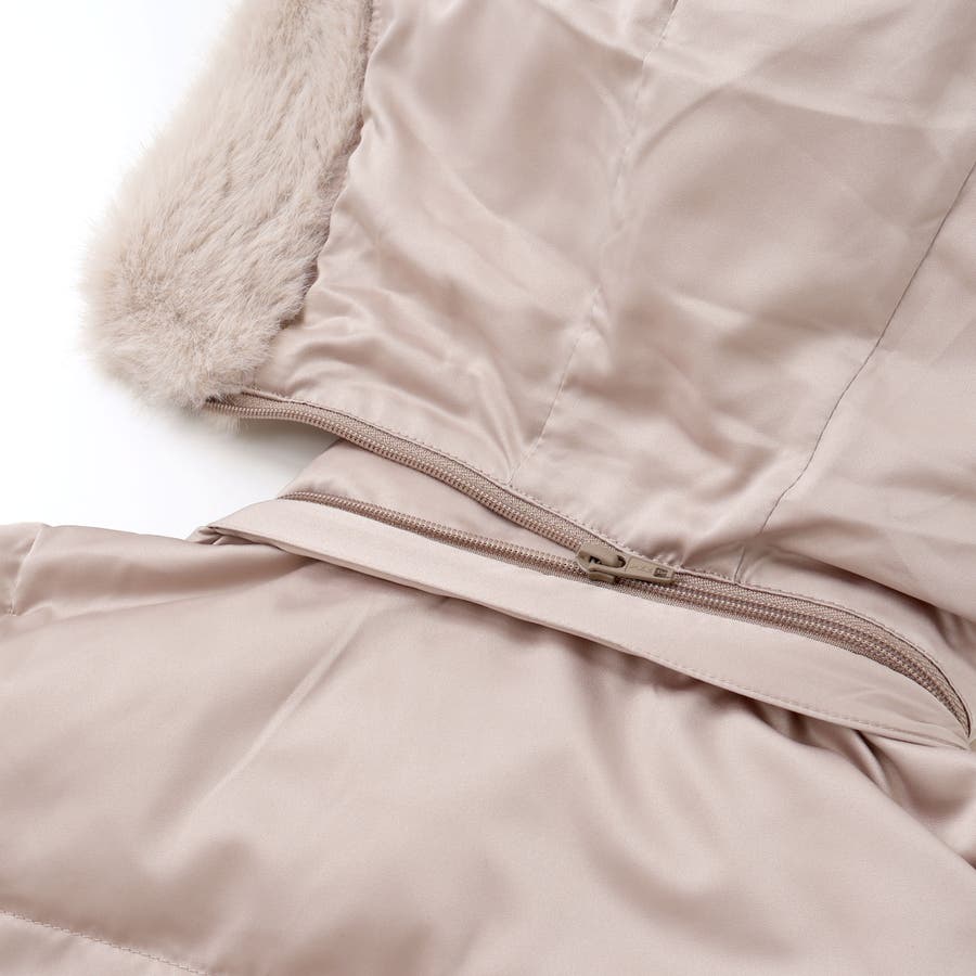 マットな光沢感のタフタとフェイクファーを切り替えた中綿コート。