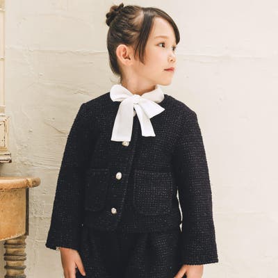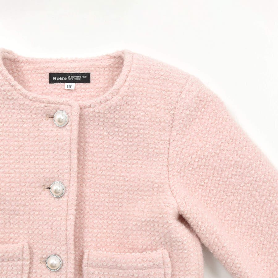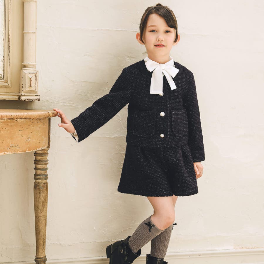 【お揃い】ラメボアパールボタンノーカラージャケット(100~160cm)