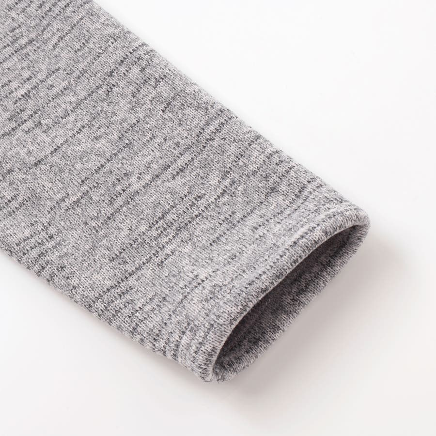 グレーの濃淡のある糸を織り上げた霜降りのようなムラ感が特徴のメランジの生地がやさしい雰囲気。