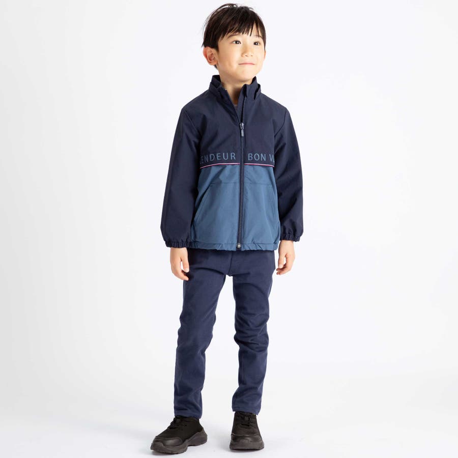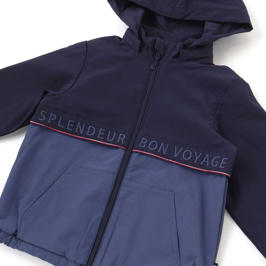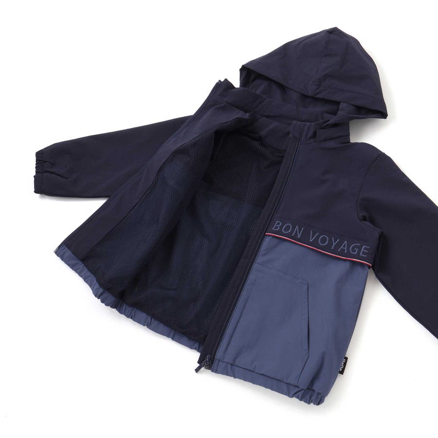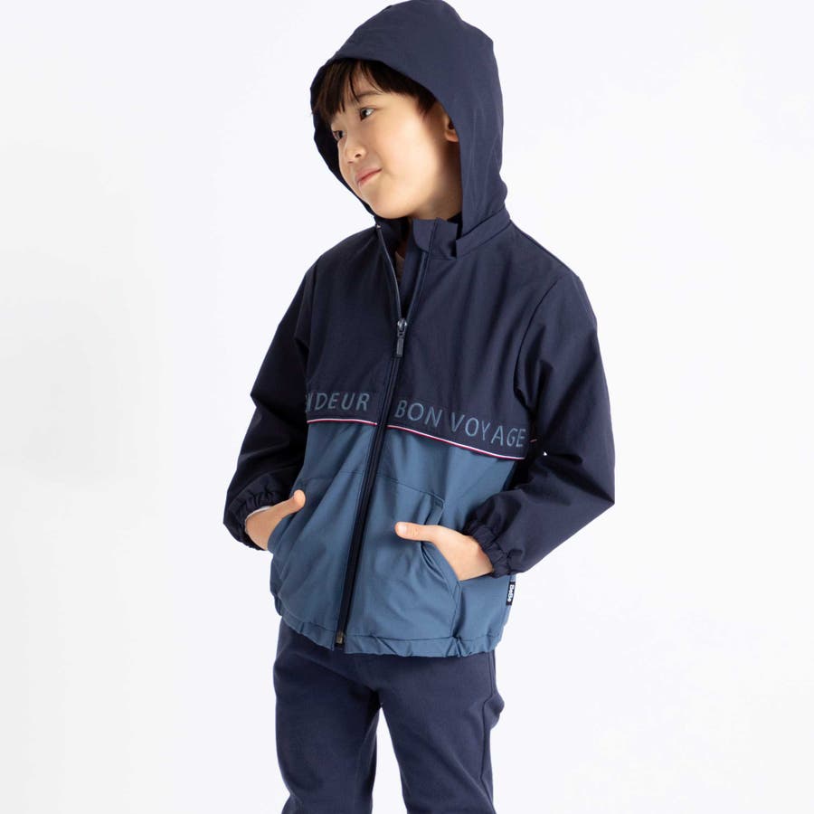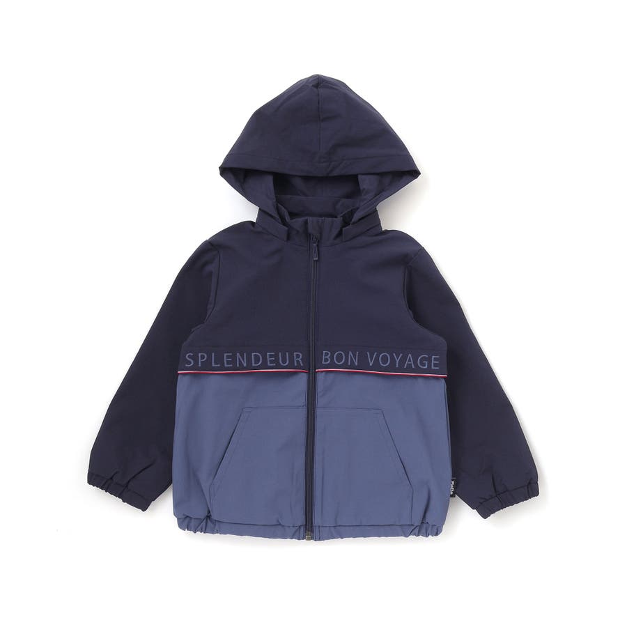 【撥水加工】リップストップフード付きバイカラーロゴブルゾン(90~150cm)
