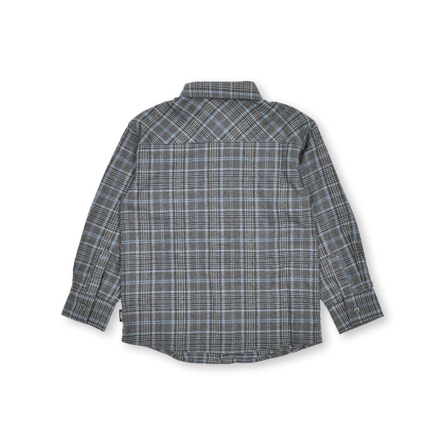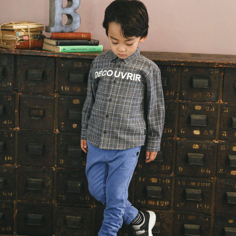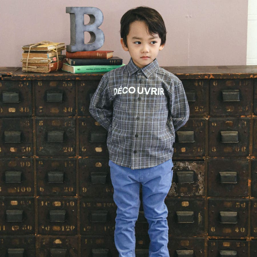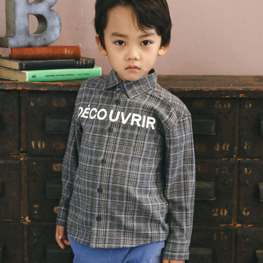 柔らかいネルチェック素材を使用した男の子用長袖シャツ。