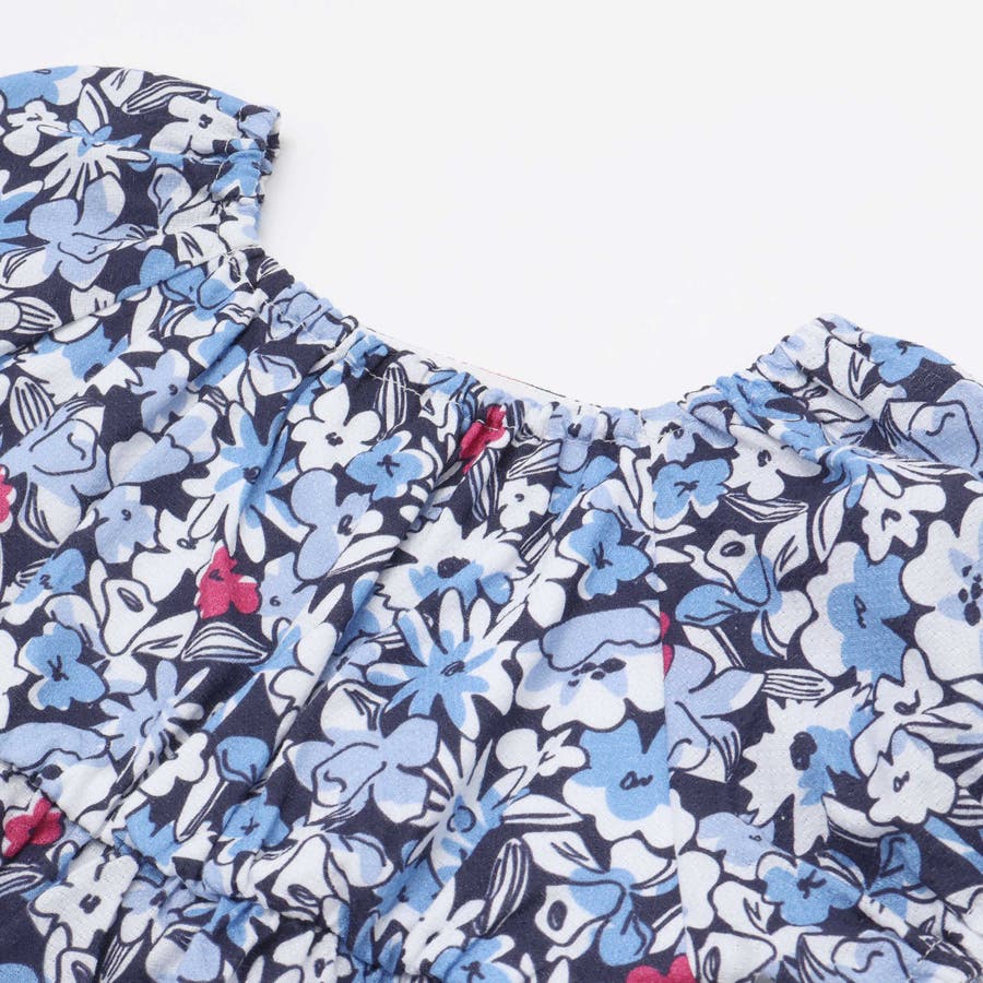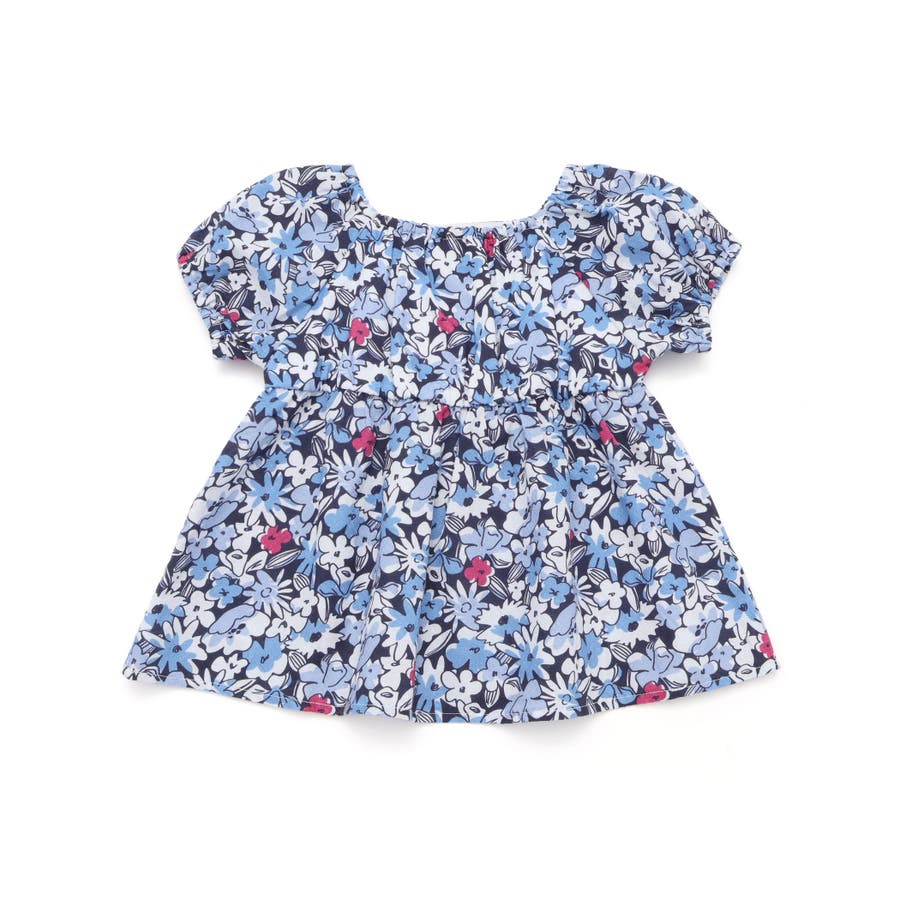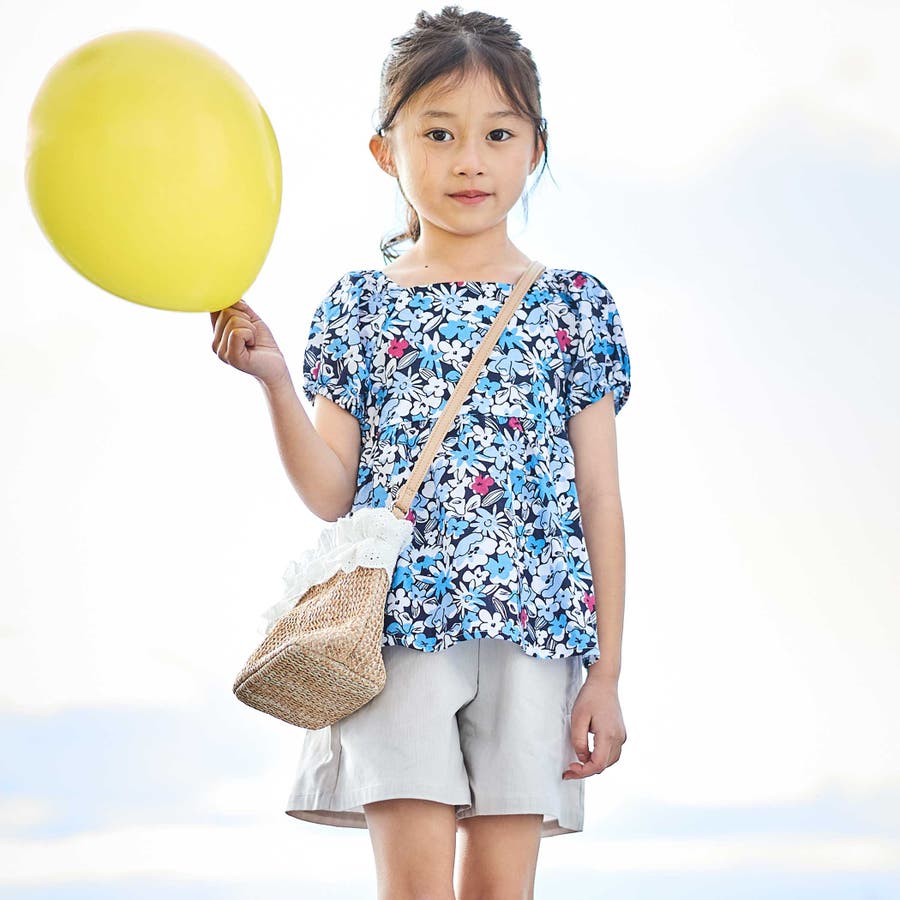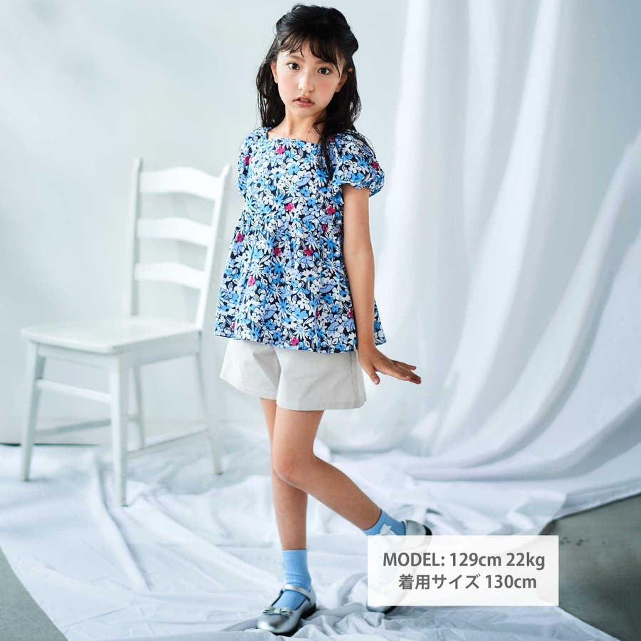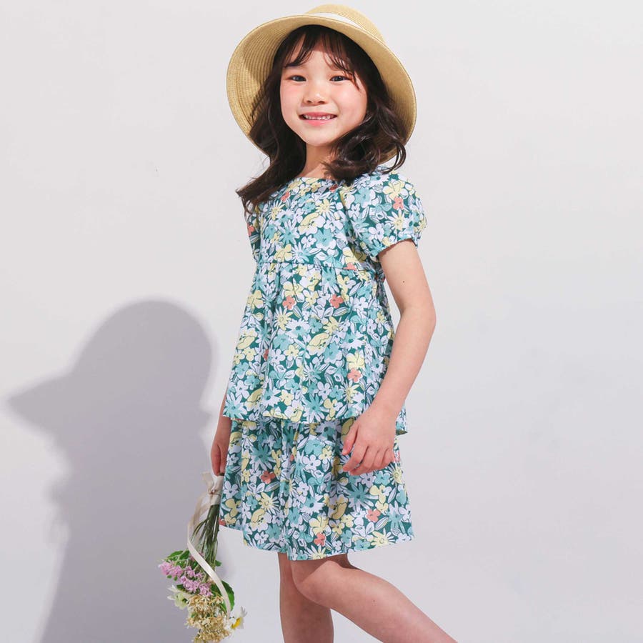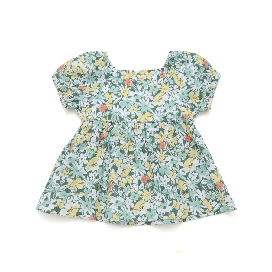 【お揃い】ドビーフラワーガーデンプリントパフスリーブブラウス(100~140cm…