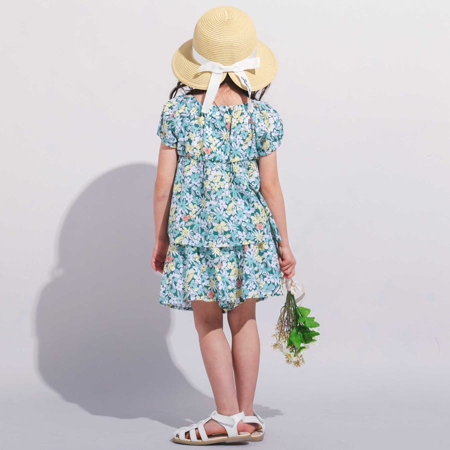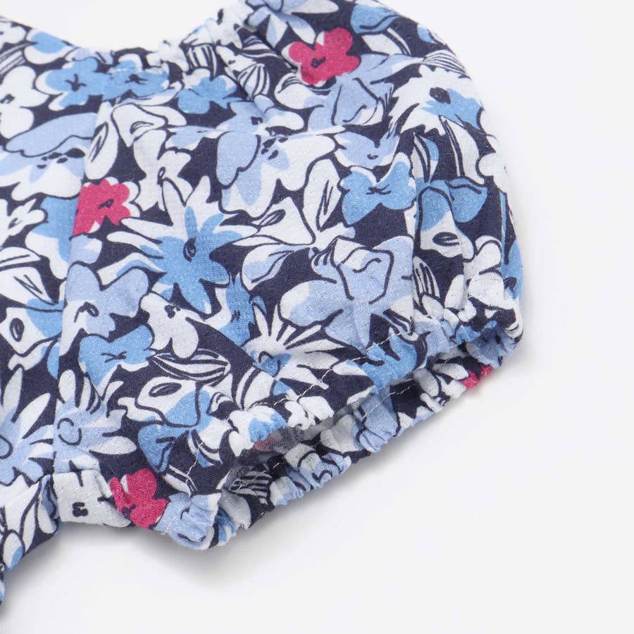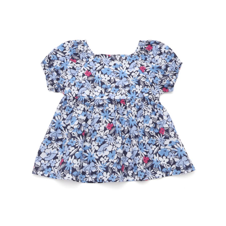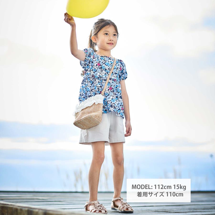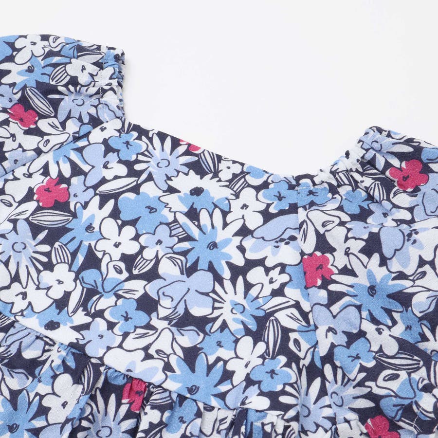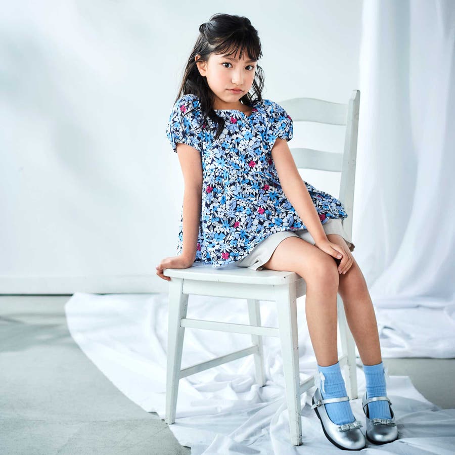 【お揃い】ドビーフラワーガーデンプリントパフスリーブブラウス(100~140cm…
