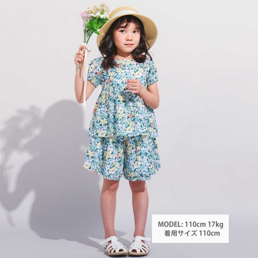 同じ花柄を使用したキュロットパンツ(1110-72529)と合わせたセットアップコーデもおしゃれです。