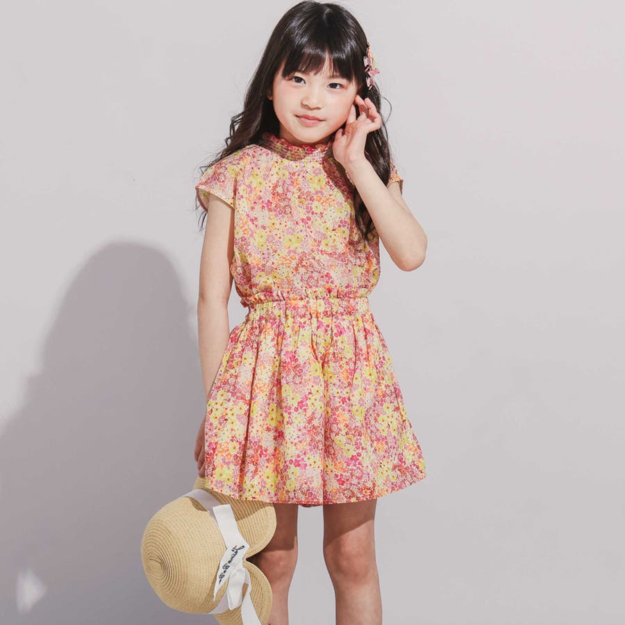 【DEVEAUX】水彩風花柄シャーリングブラウス(90~140cm)
