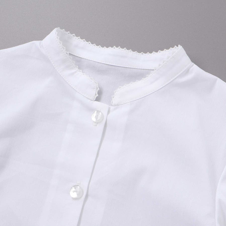 襟ぐりには細かなピコレースを挟み込んで付け襟なしでも可愛く着ていただけます。