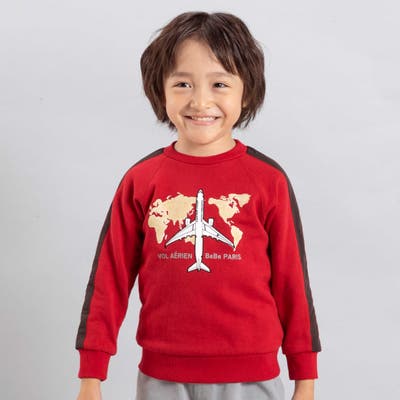 【JALコラボ】飛行機刺しゅう袖切り替えラグラントレーナー(90~130cm)