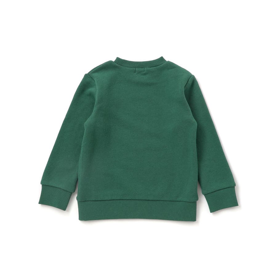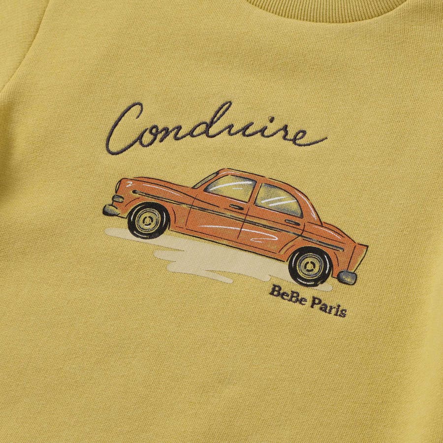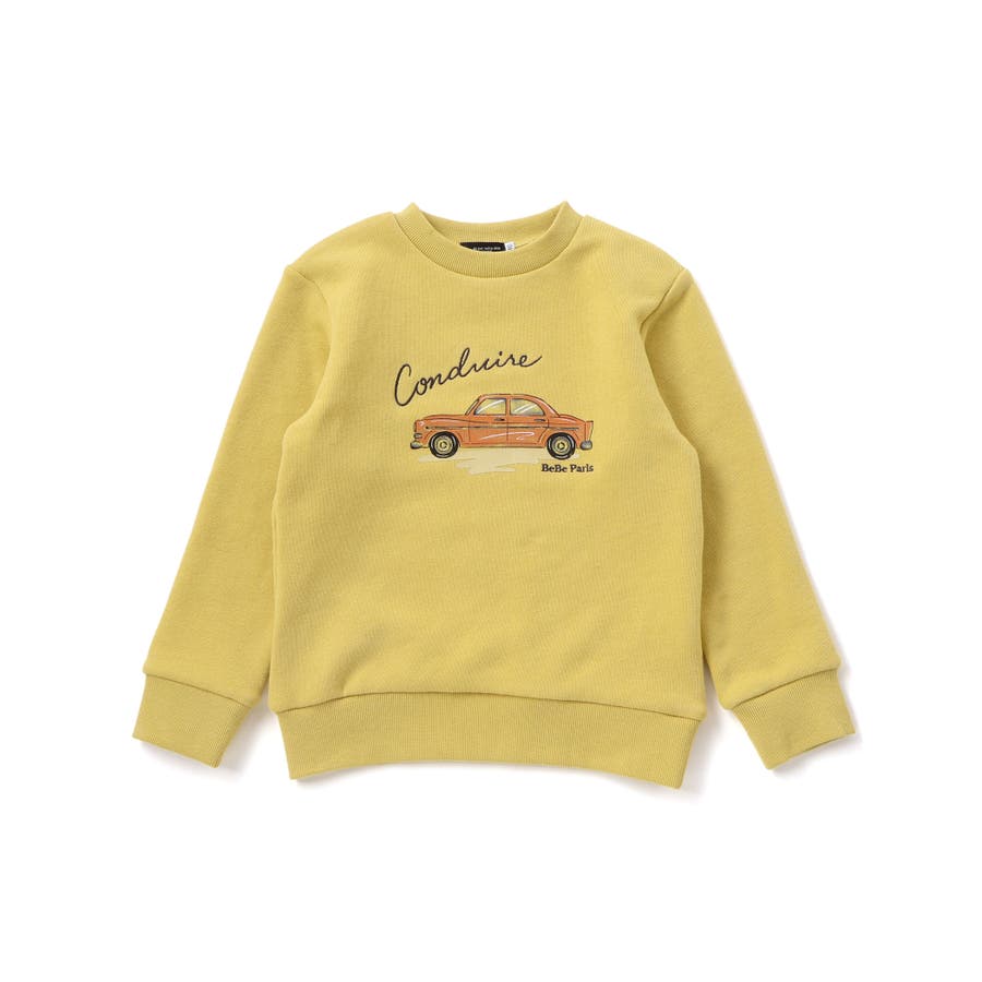水彩タッチのクラシックカーとロゴ刺しゅうが遊び心のあるトレーナー。