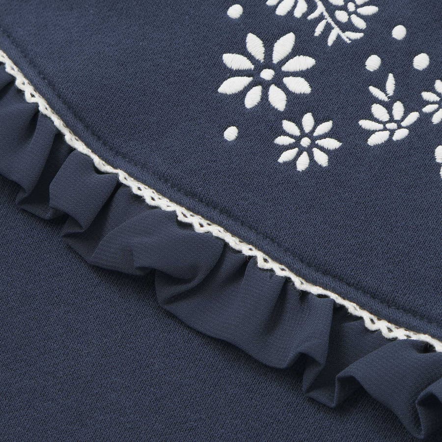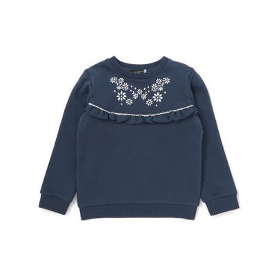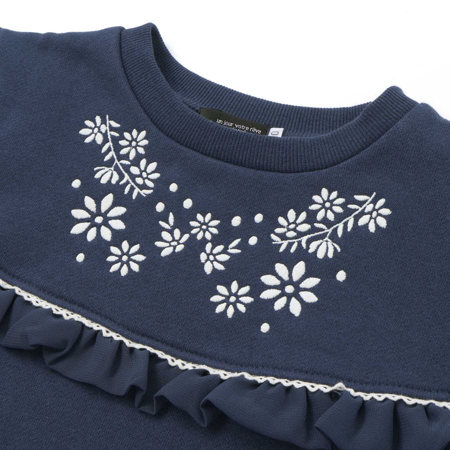 裏起毛フラワー刺しゅう切り替えフリルトレーナー(90~150cm)
