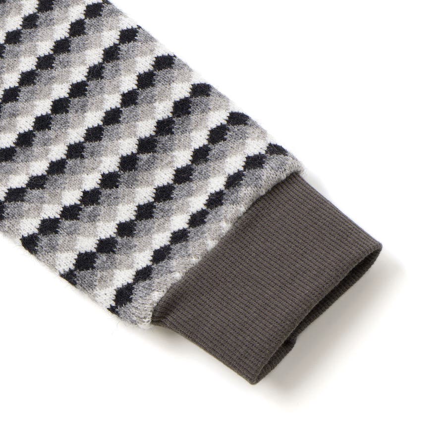細かなダイヤの形が並んだボーダーの配色になっています。