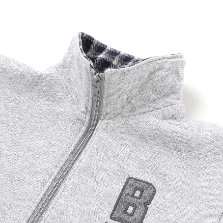 襟の内側をネルチェックの生地に切り替えたトレーナー。