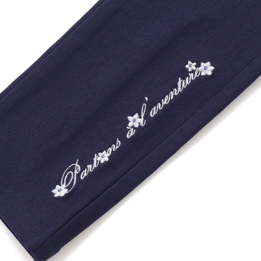 ロゴとお花を組み合わせた裾の刺しゅうがさりげないポイントです。