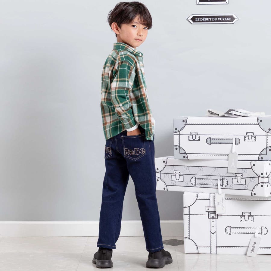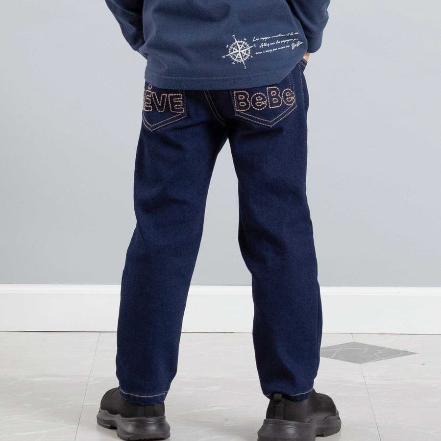 ストレッチジョグデニムバックステッチロゴロングパンツ(90~160cm)
