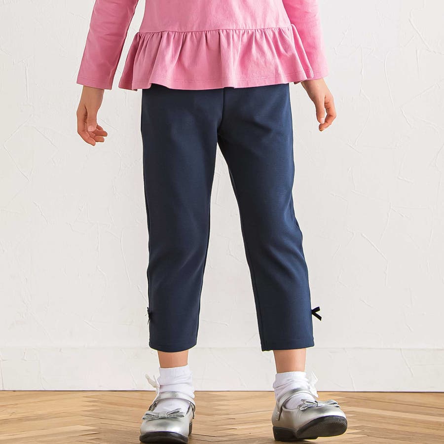 【抗菌防臭】ミラノリブリボン付き8分丈クロップドパンツ(90~130cm)
