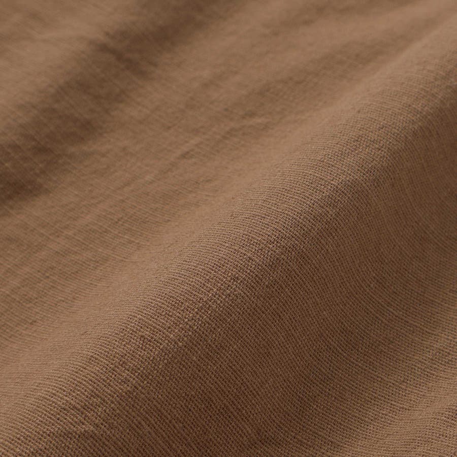 不規則な太さのスラブ糸を織り上げたナチュラルな風合いとストレッチの効いたリラックス感がある素材です。