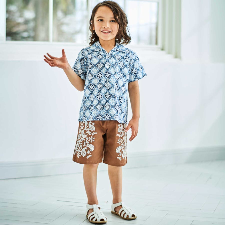 ペーズリープリントストレッチオックスハーフパンツ(90~150cm)