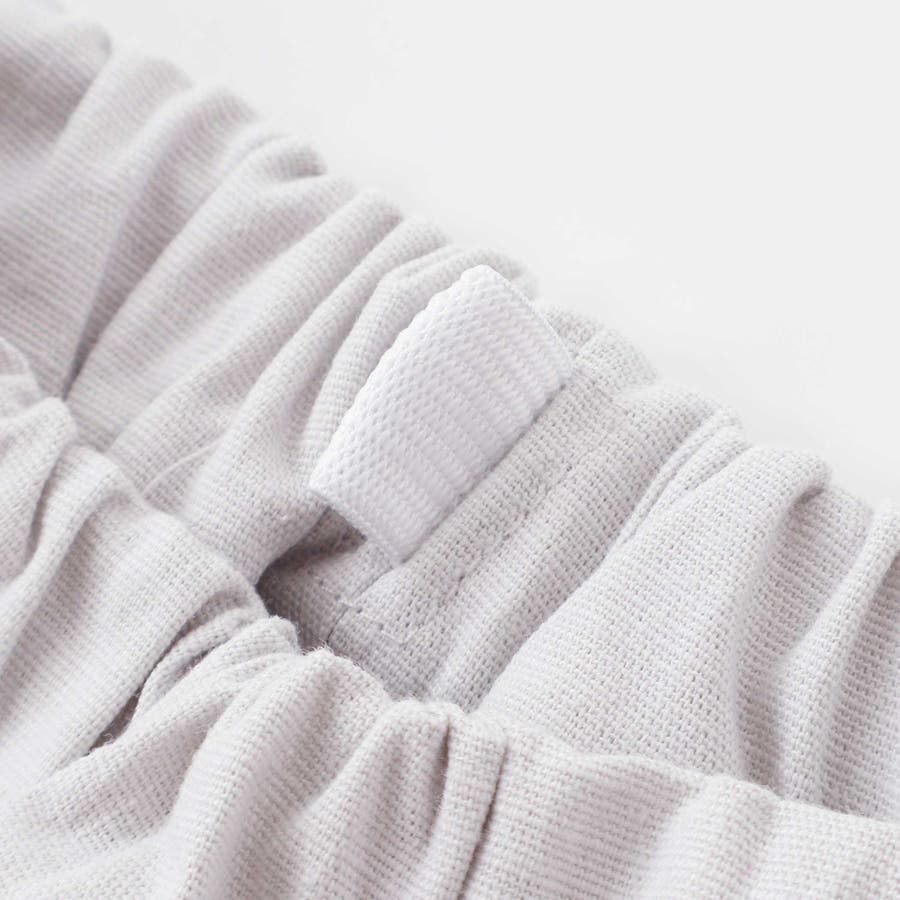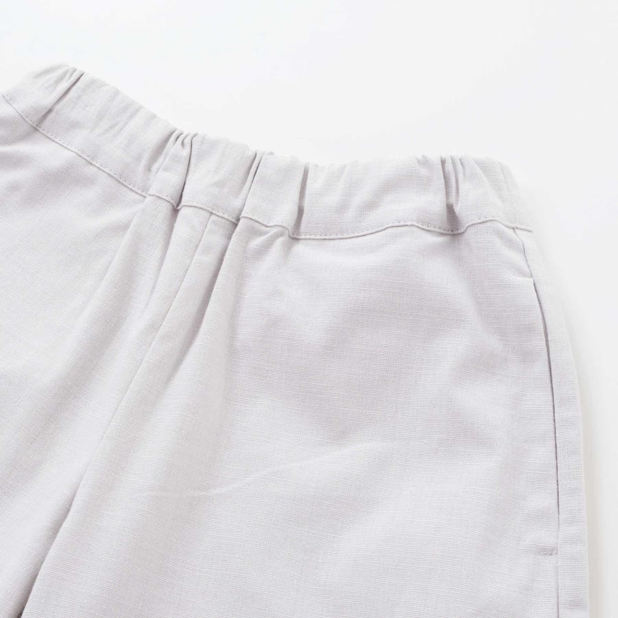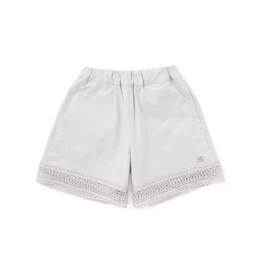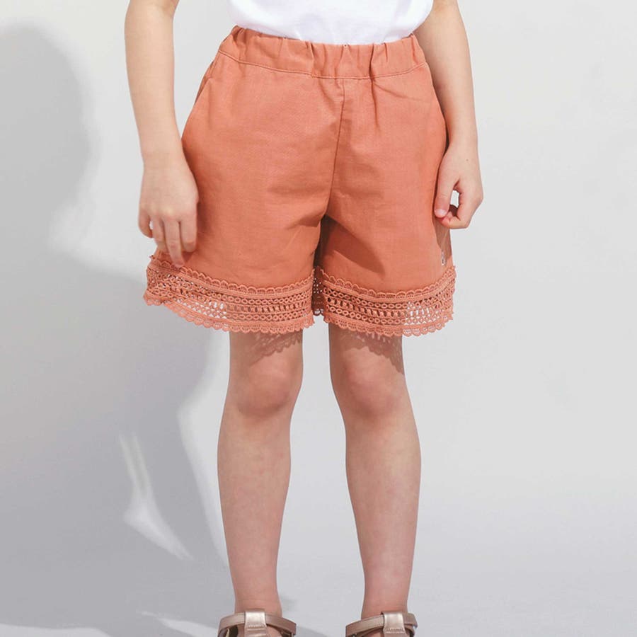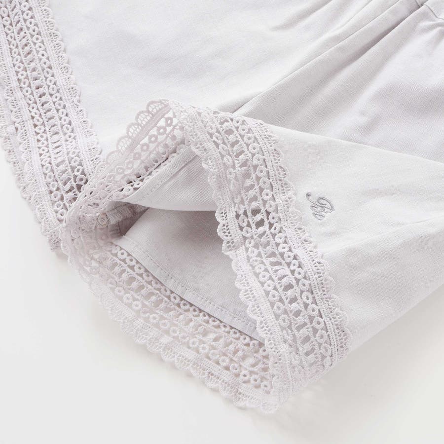裾にあしらった幅広のレースのシアー感がと麻のような生地が夏らしいショートパンツ。