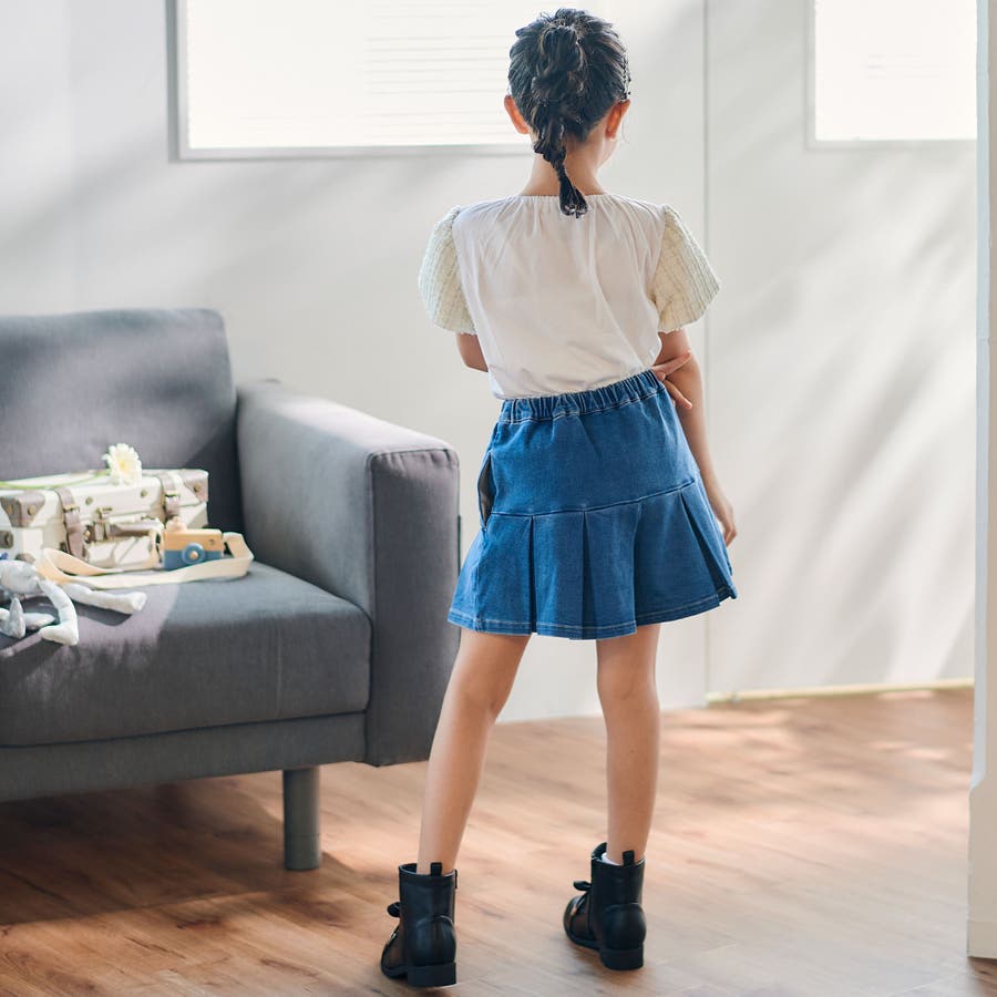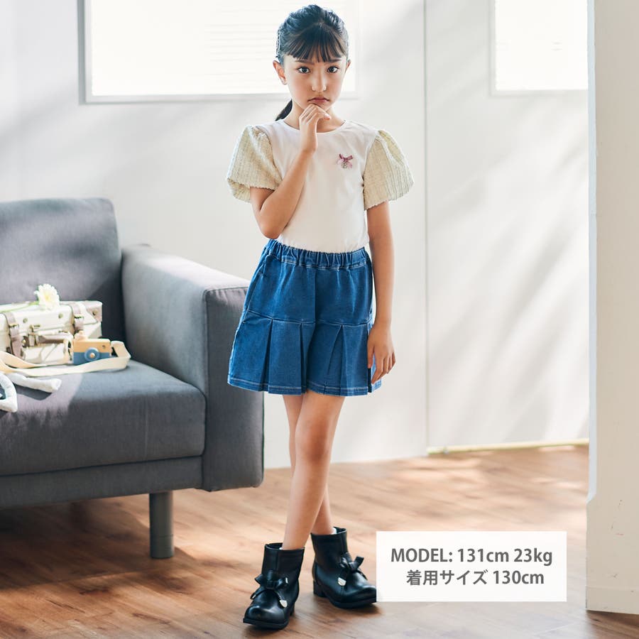 ストレッチジョグデニムプリーツショートパンツ(90~150cm)
