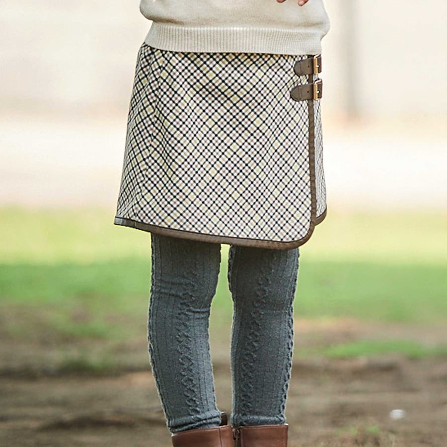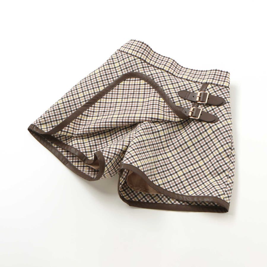 【お揃い】TRチェックパイピングラップスカート風ショートパンツ(100~150c…