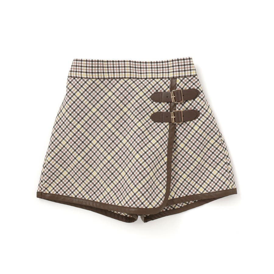 ラップスカート風のデザインが可愛いチェックのショートパンツ。
