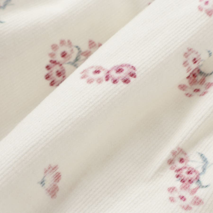オフホワイトのベースにピンク系の優しいカラーリングのお花がとてもガーリー。