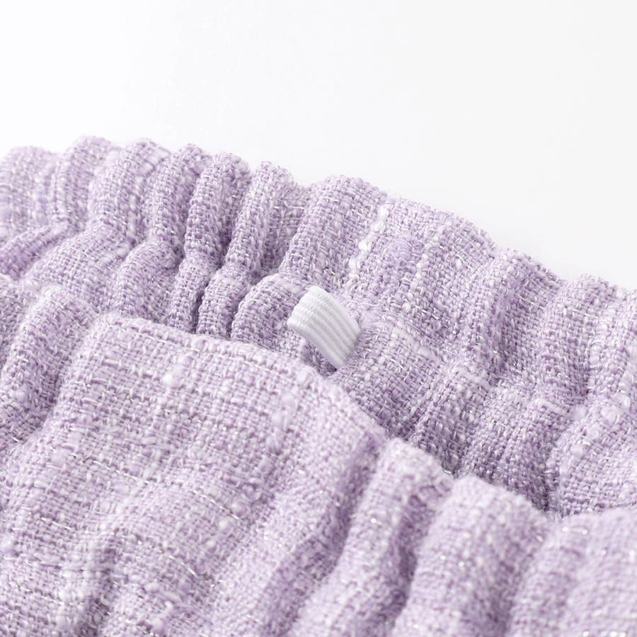 ラメ糸がMIXされた控えめのキラキラ感が可愛いサマーツイード生地を使用。