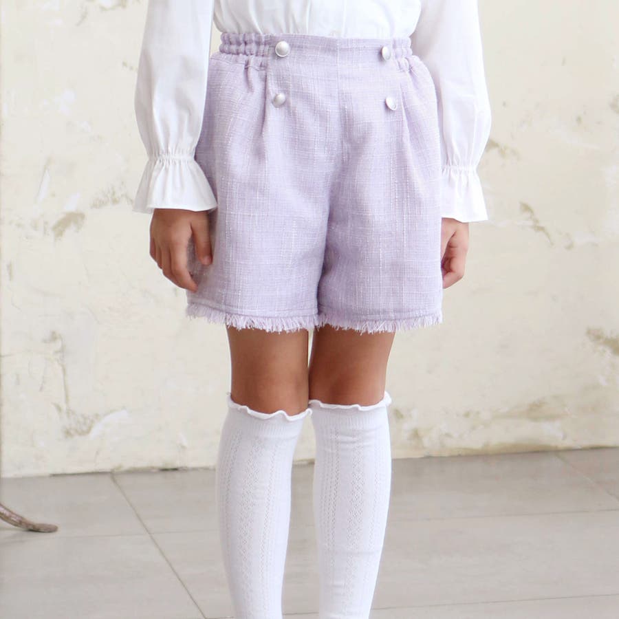 濃淡のある糸をMIXしたサマーツイードのショートパンツ。