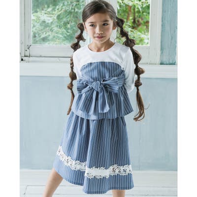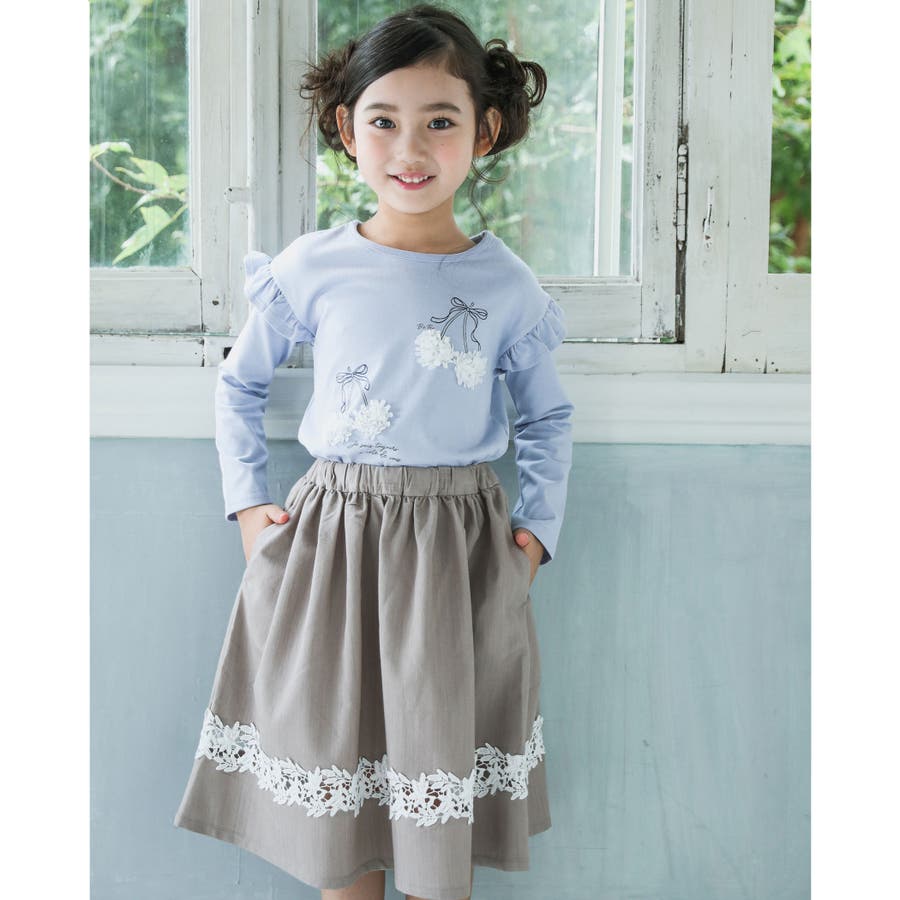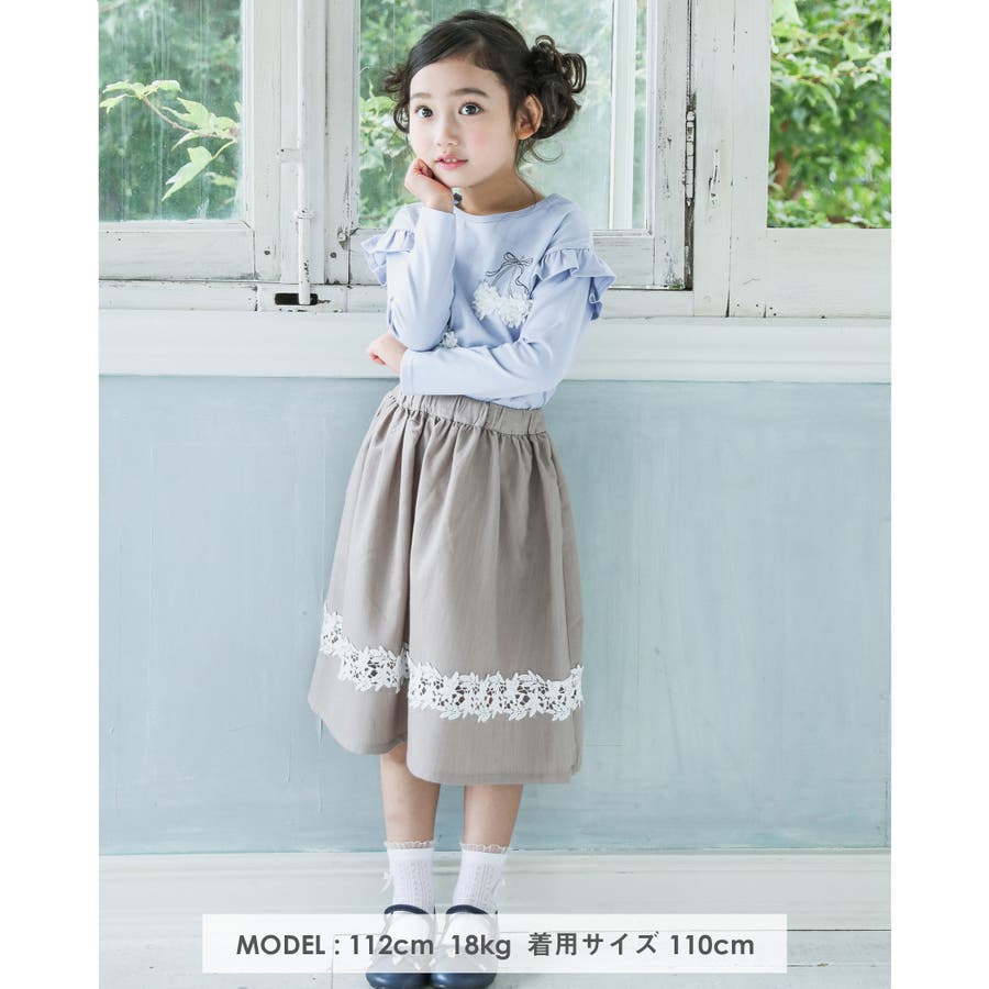 デニム 風 レース 切り替え ギャザー スカート(90~140cm)