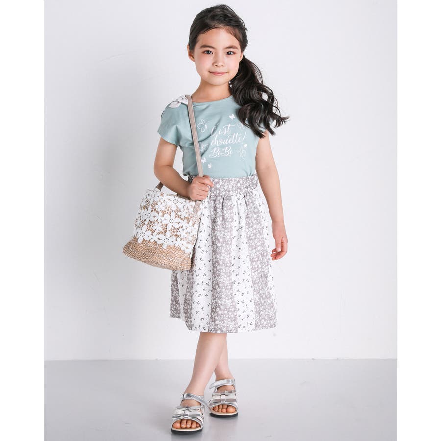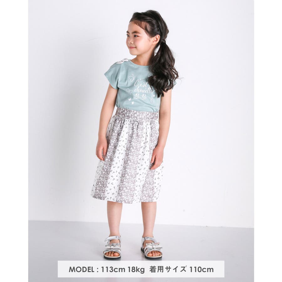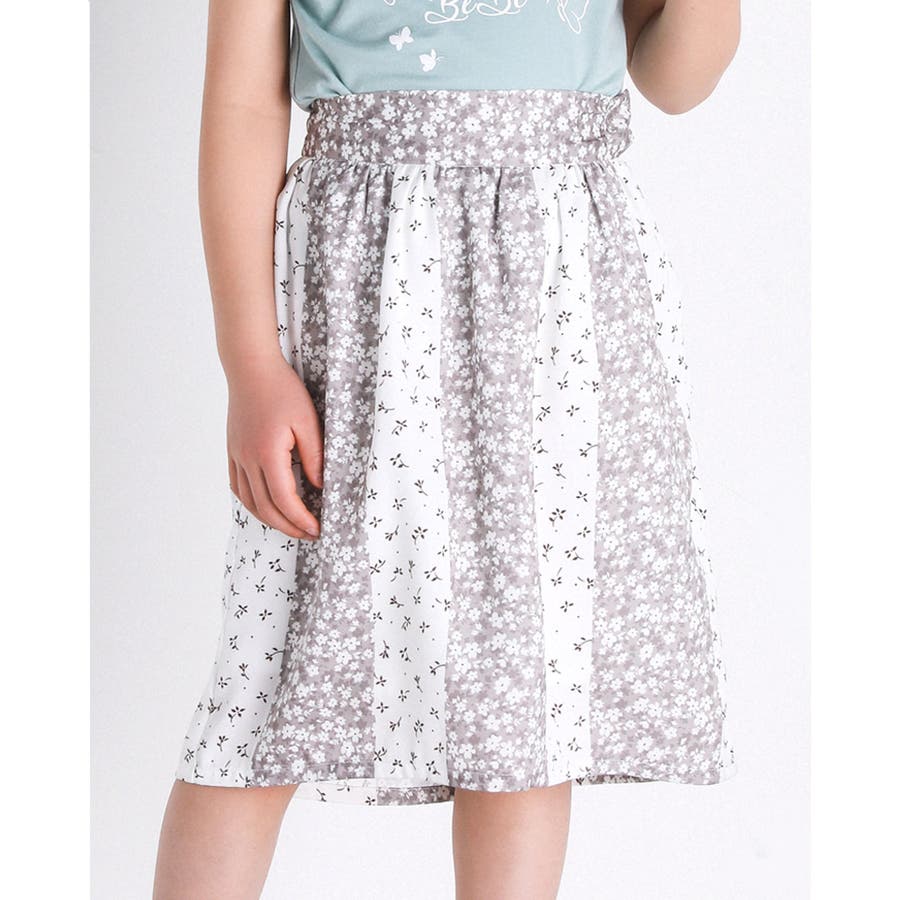 パッチワーク 風 フラワー プリント ミディ スカート(100~140cm)