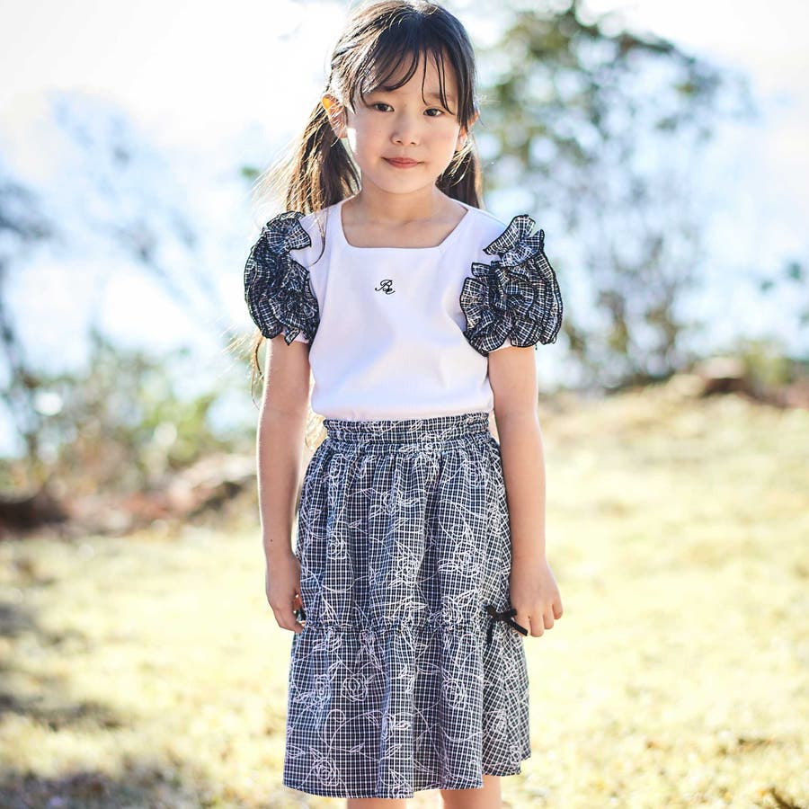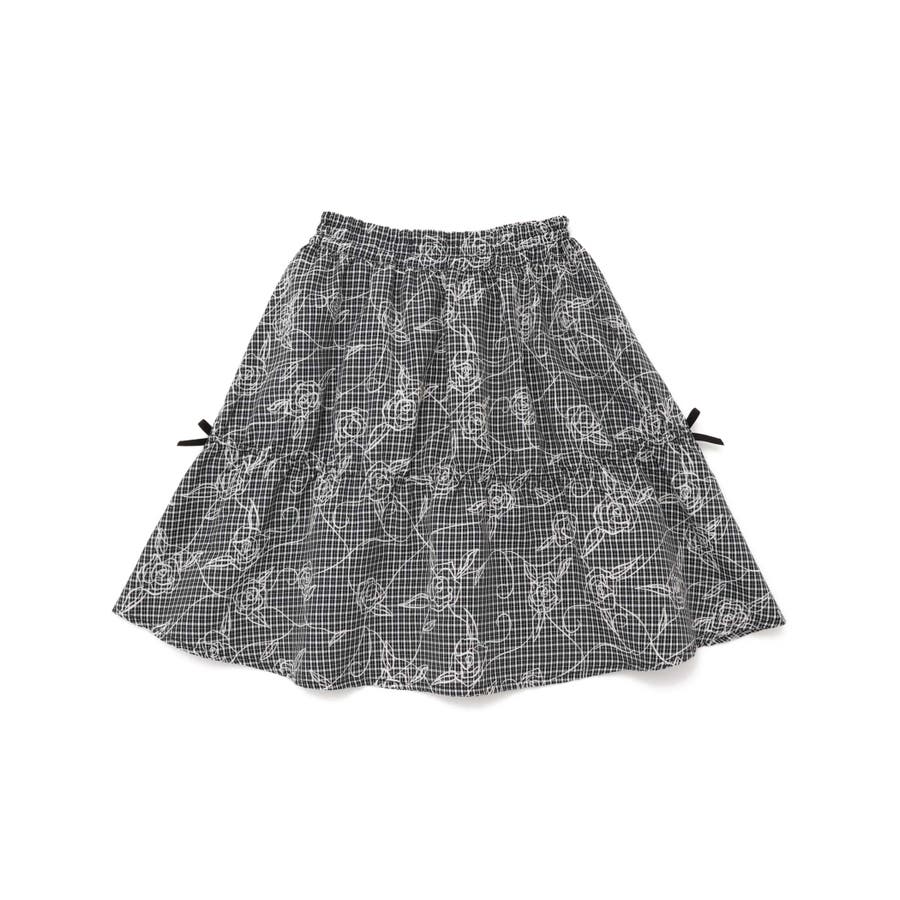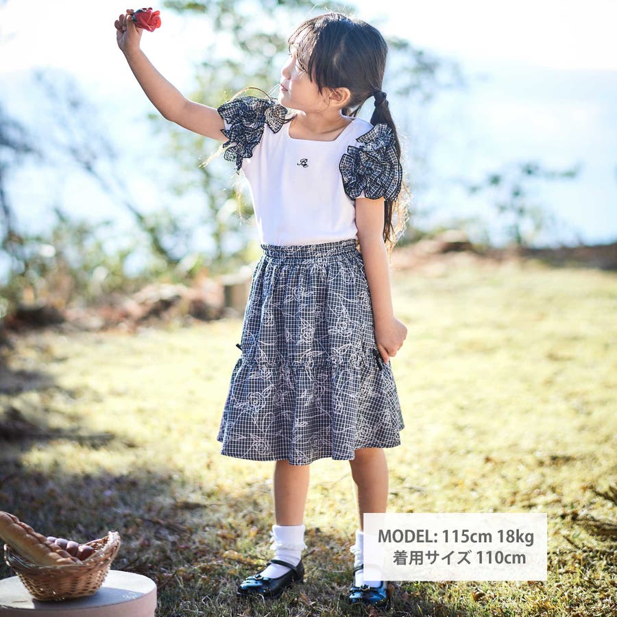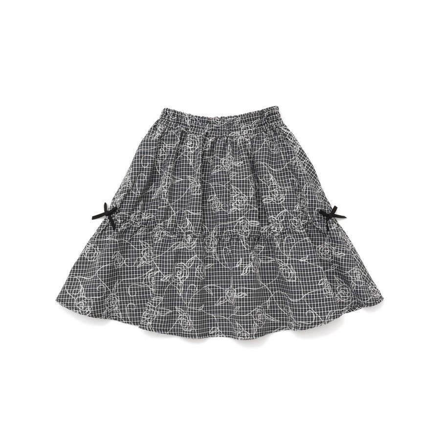 【お揃い】先染めチェックローズプリントミモレ丈スカート(110~160cm)