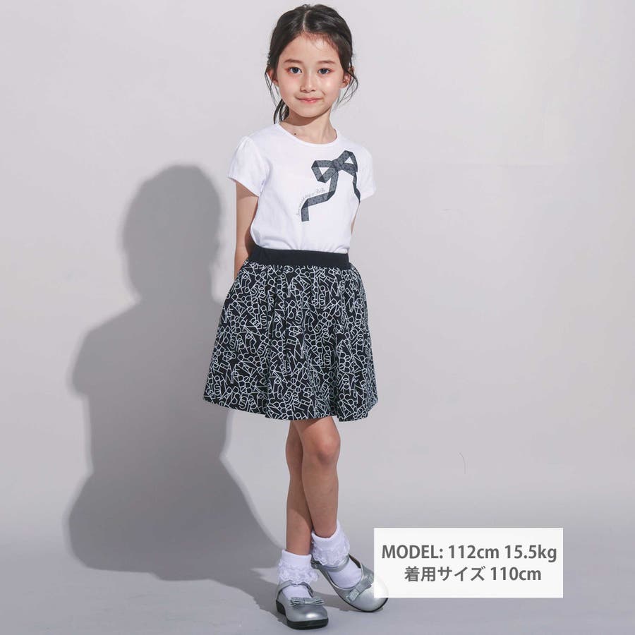 【お揃い】ジオメトリックロゴ総柄ポンチギャザースカート(90~150cm)