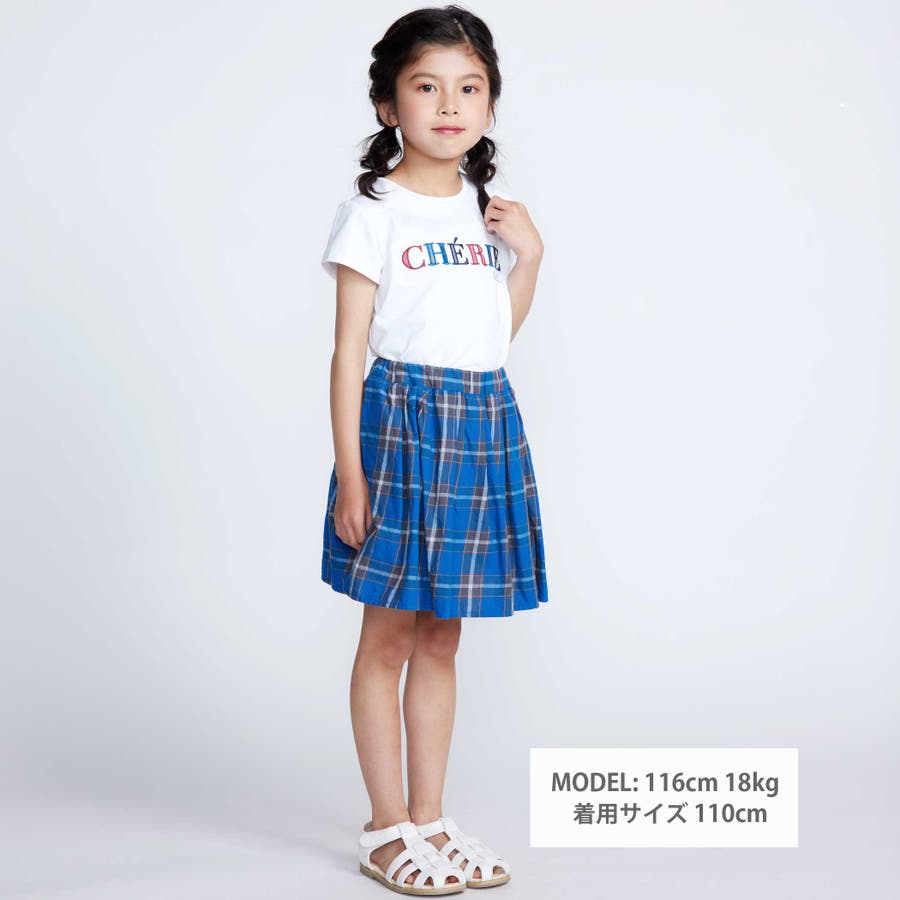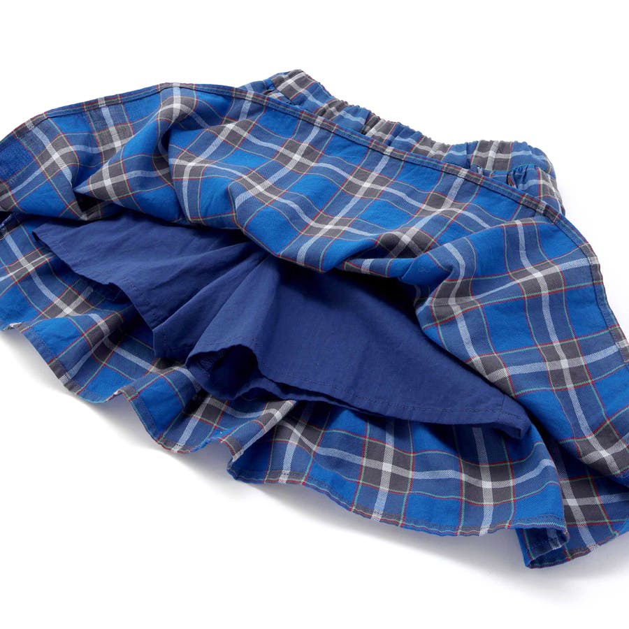 【お揃い】【神戸タータン×BeBe】チェックギャザーインナーパンツ付きスカート(…