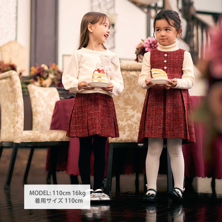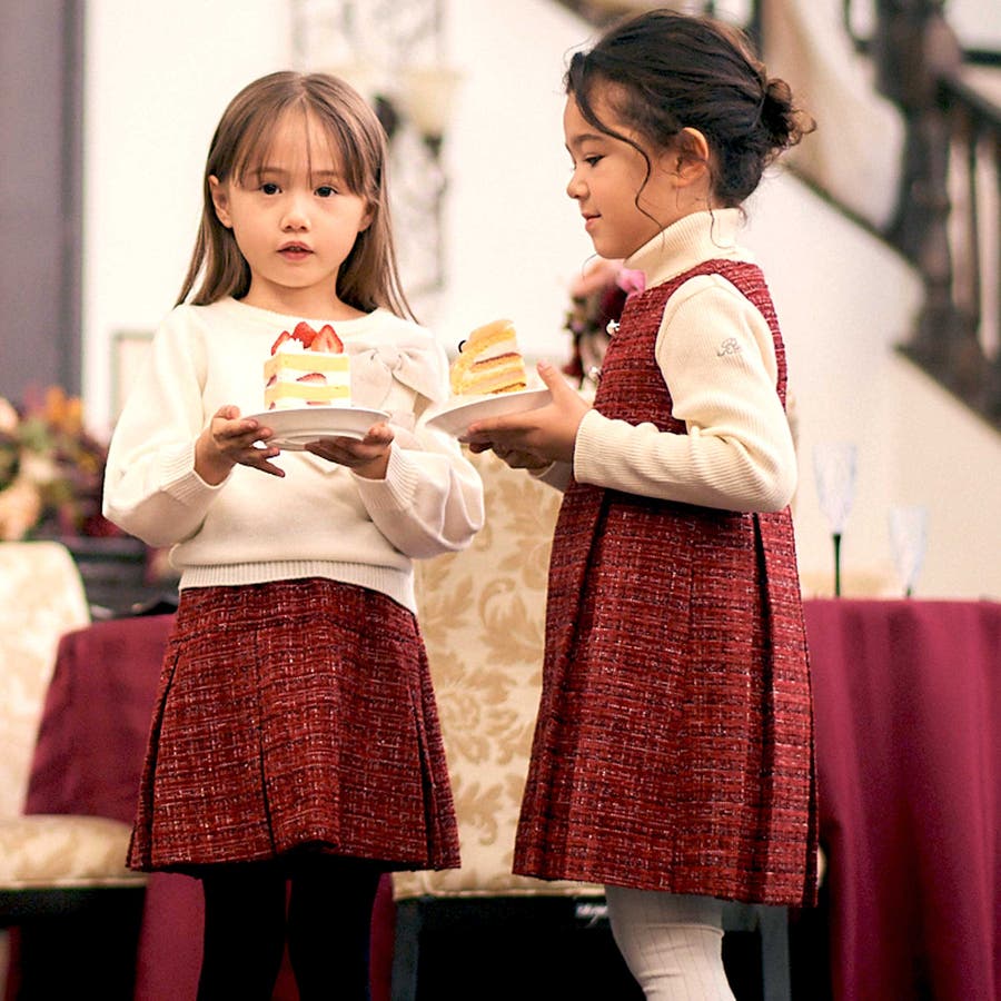 スカート部分は格子状に編み上げた様々な糸の表情がおしゃれなツイード生地を使用。
