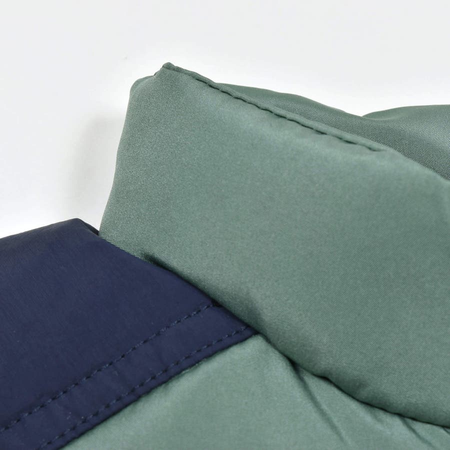 | 素材 | (表)ポリエステル100% 部分使い:ナイロン100% 中わた:ダウン80% フェザー20% (裏)ポリエステル100% |