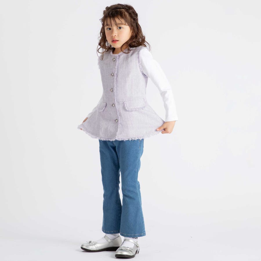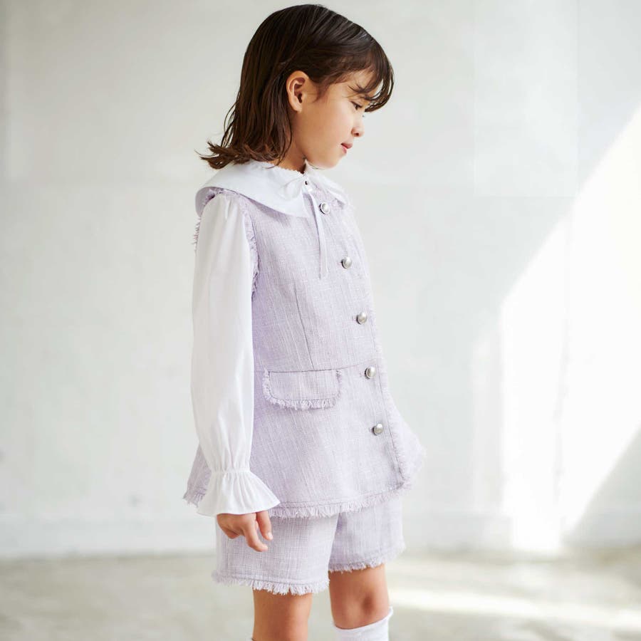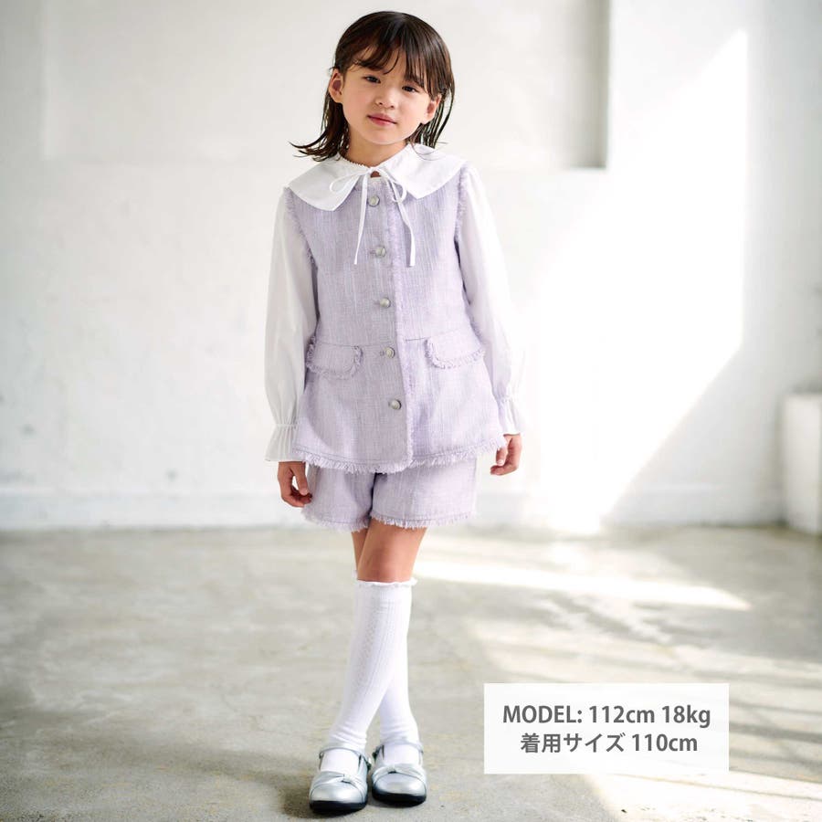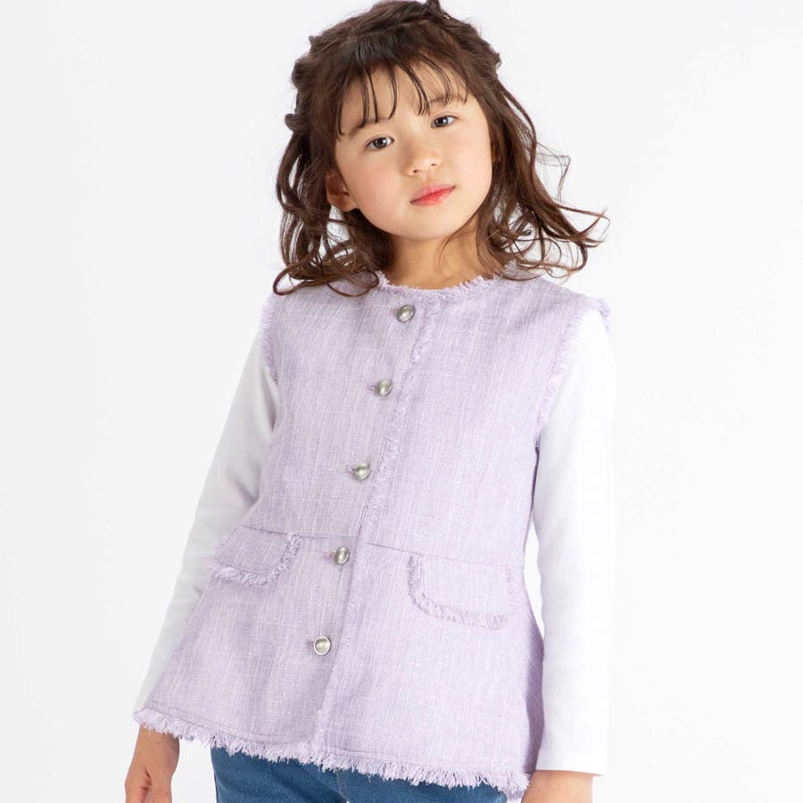 【お揃い】ツイード調フリンジボタンジレ(110~150cm)
