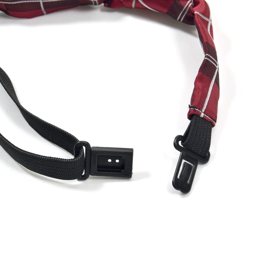 レッド系・ネイビー系ともにトラッド感がありお顔周りを凛と見せてくれるアイテムです。